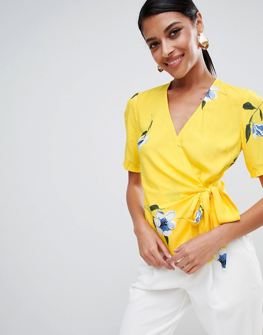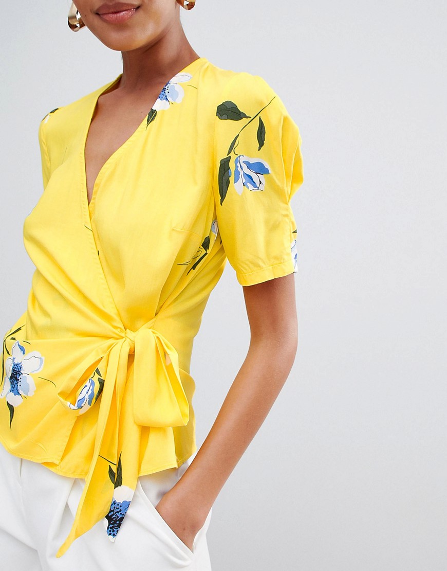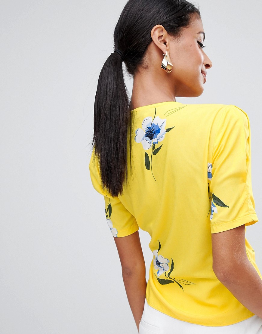 Warehouse Żółta Bluzka zdobiona w kwiaty L 40
