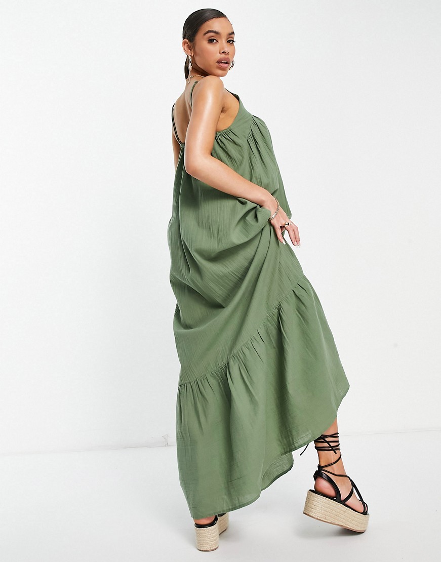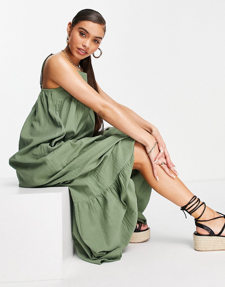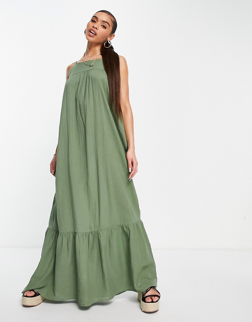 Warstwowa sukienka maxi w kolorze khaki defekt 42