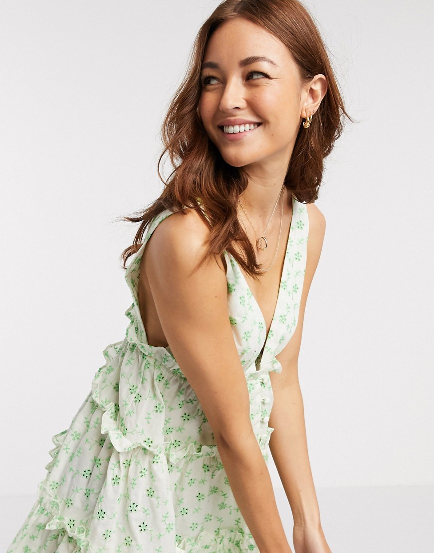 Warstwowa sukienka mini z haftem angielskim i guzikami zielona 42