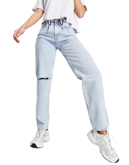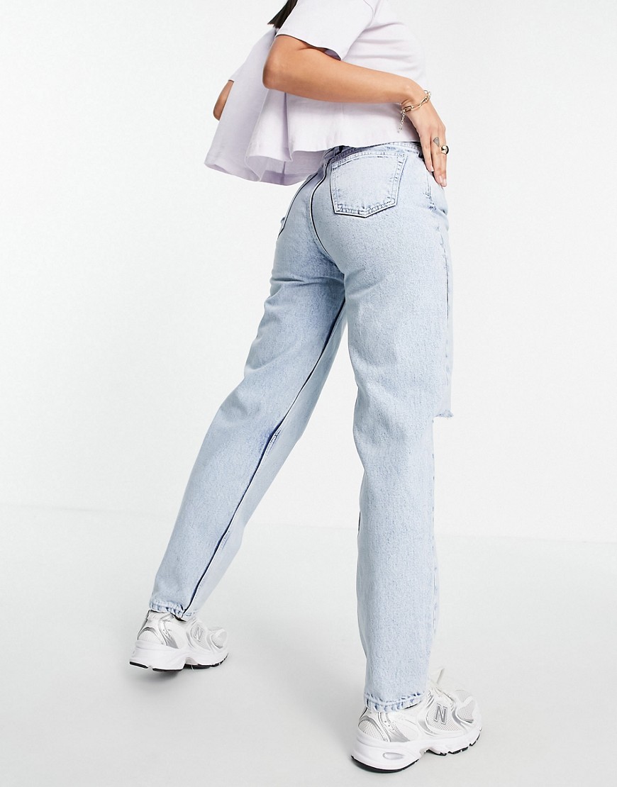 Waven jasnoniebieskie zwężane jeansy w stylu lat 90 vintage rozdarcie na kolanie 44