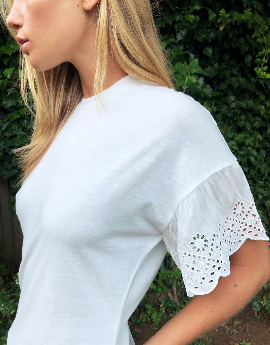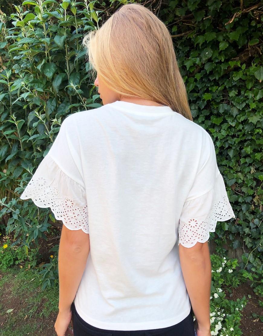 Wednesday’s Girl luźny biały T-shirt damski wykończony haftem XS