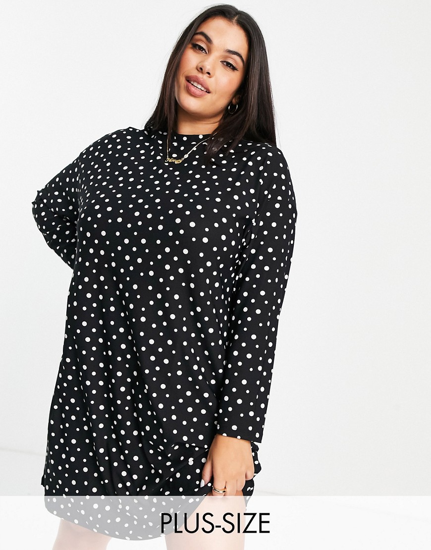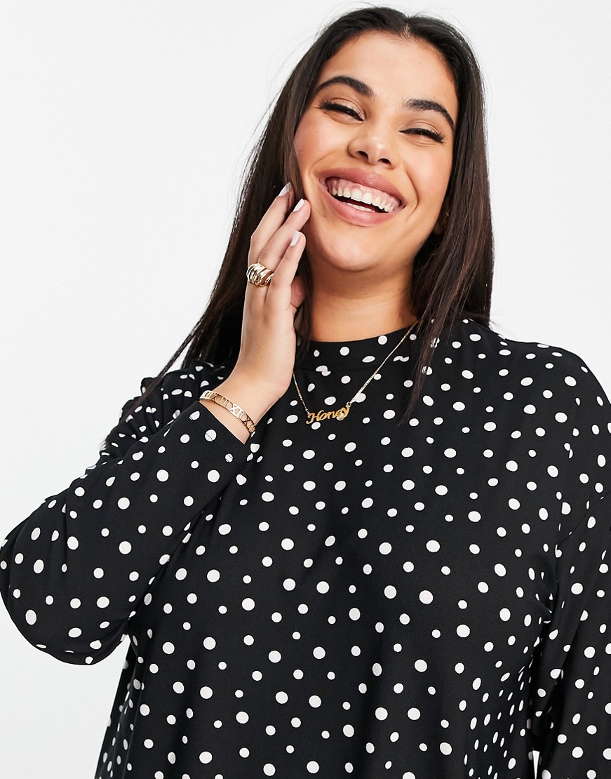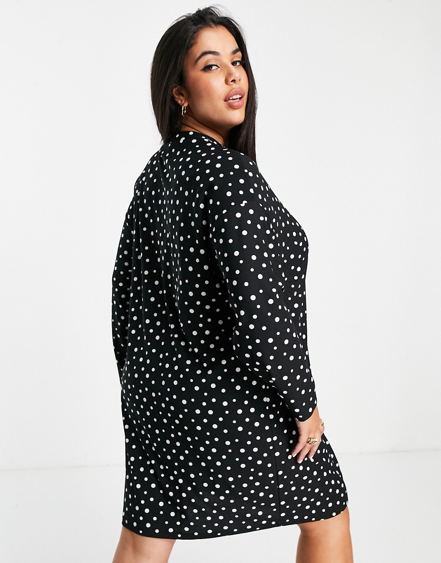 Wednesday’s Girl plus size sukienka nad kolano z długimi rękawami w groszki 46