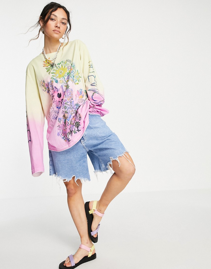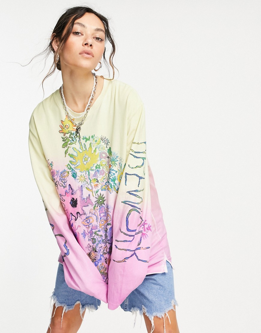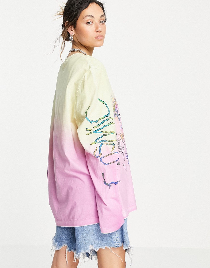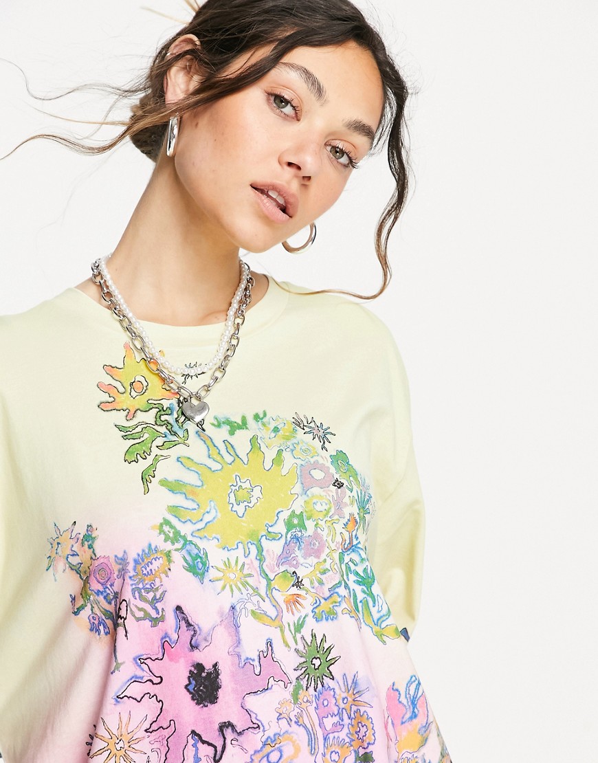 Weekday Chicory zielony t-shirt oversize z efektem tie-dye L