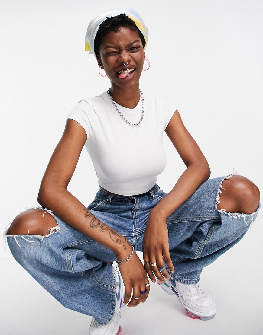 Weekday krótki biały t-shirt z bawełny organicznej XS