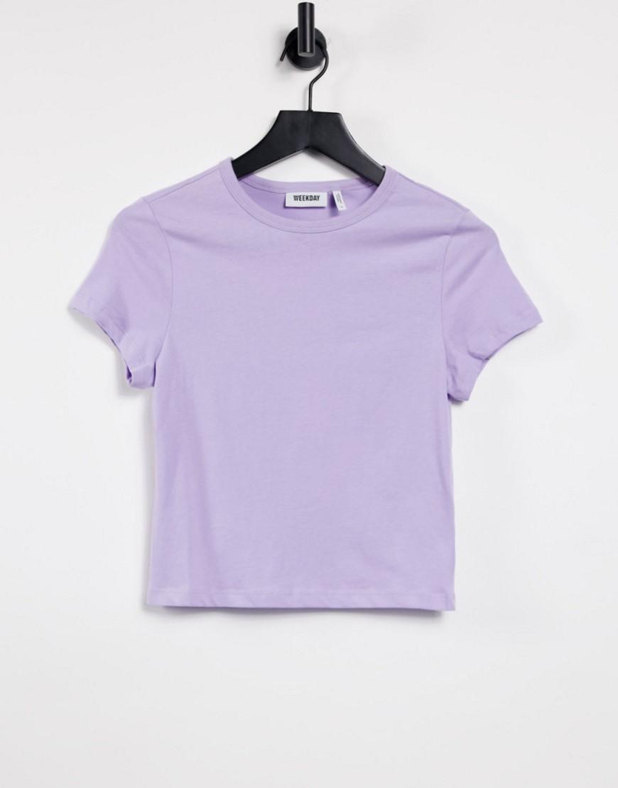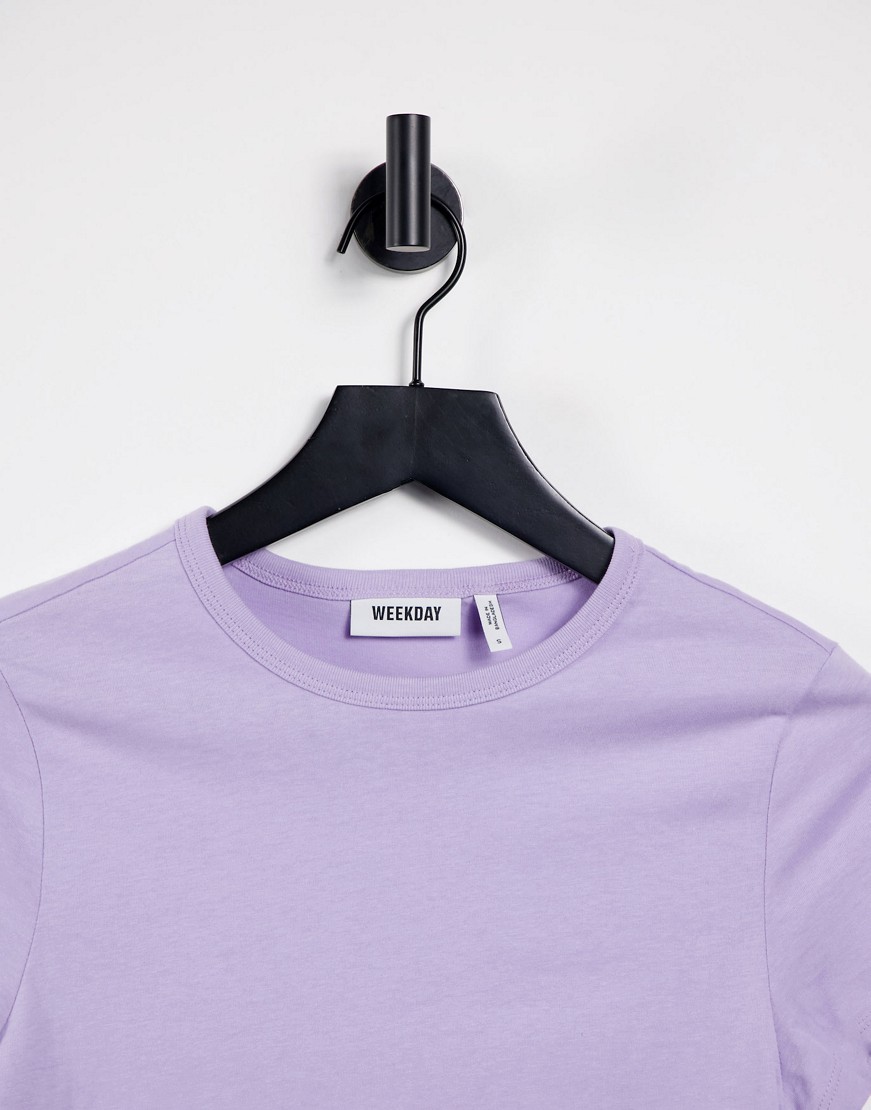 Weekday krótki fioletowy t-shirt z bawełny organicznej XS