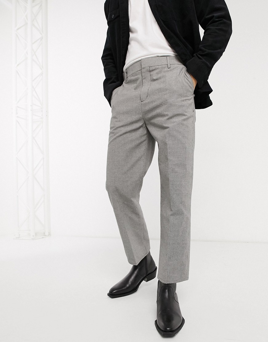 Weekday szare męskie spodnie w kratę straight leg W36 L32
