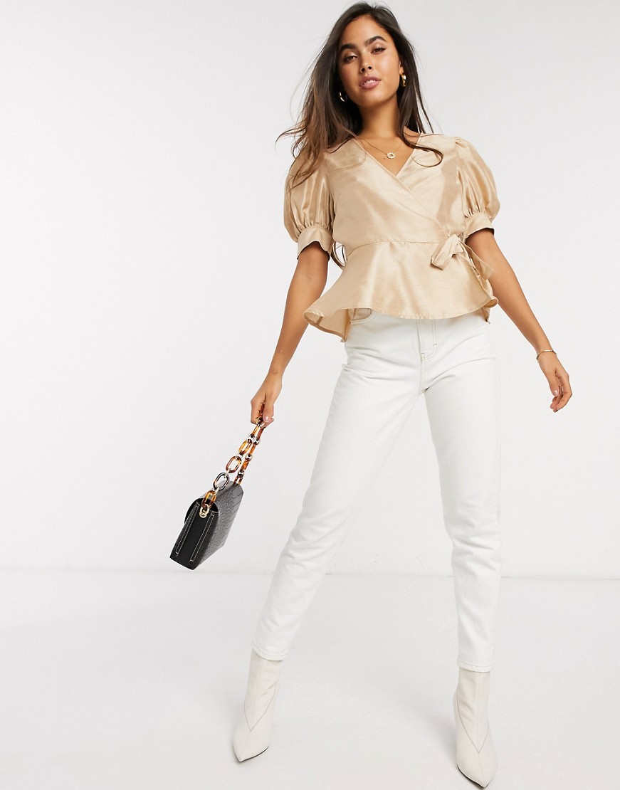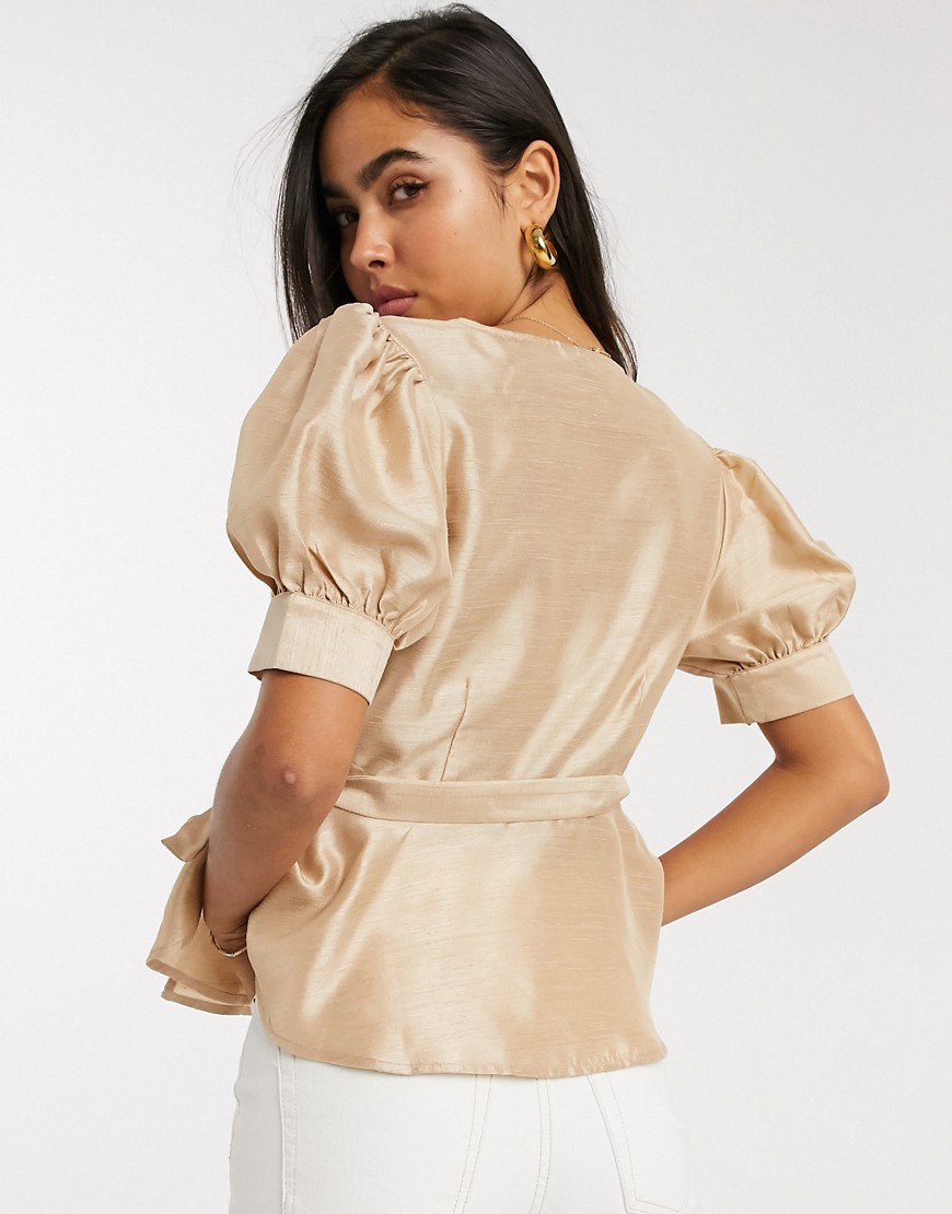 wiązana bluzka z bufiastymi rękawami M