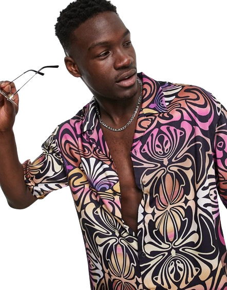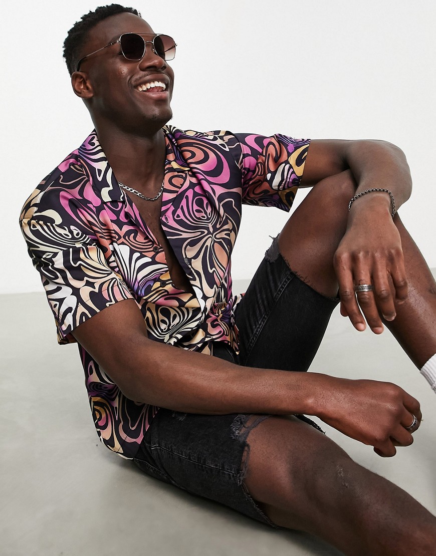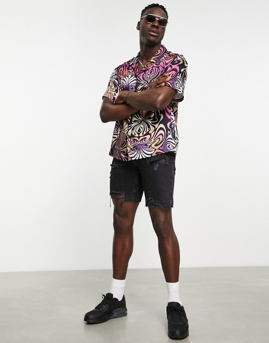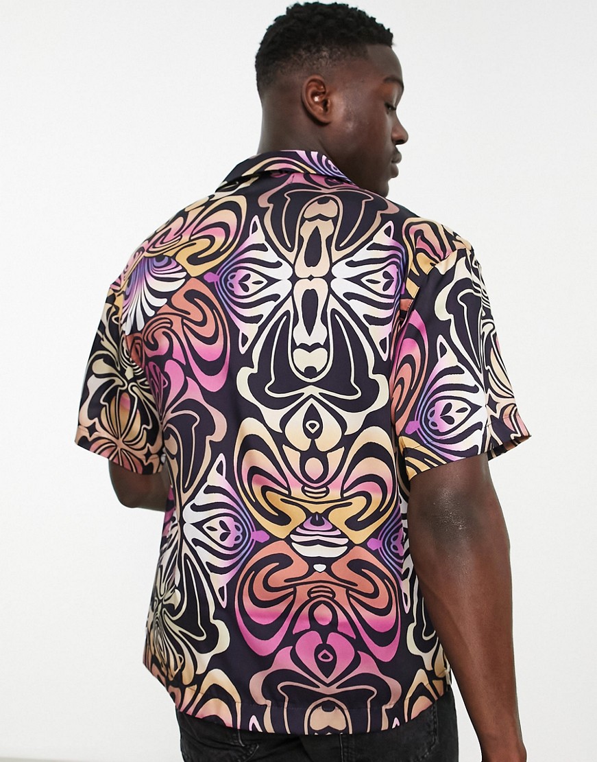 Wielokolorowa koszula z falowanym nadrukiem z krótkim rękawem defekt M