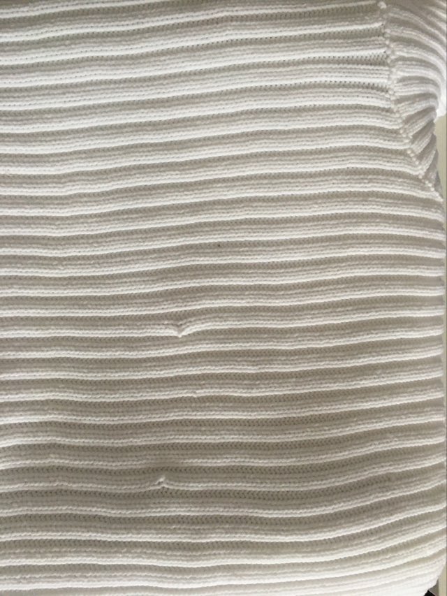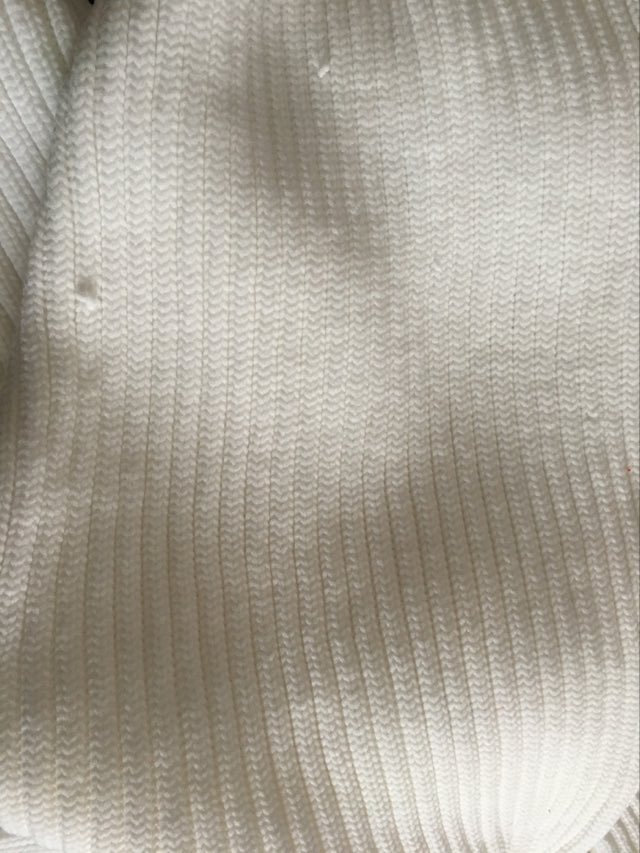 - Defekt: fabryczne liczne zgrubienia materiału oraz zaciagnięcia na rękawie (zdjęcia).
