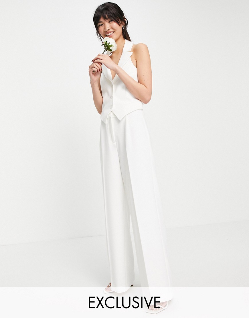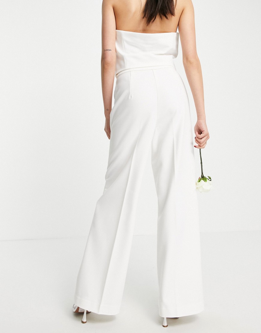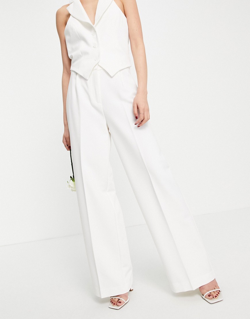 YAS damskie eleganckie białe spodnie z szerokimi nogawkami defekt M