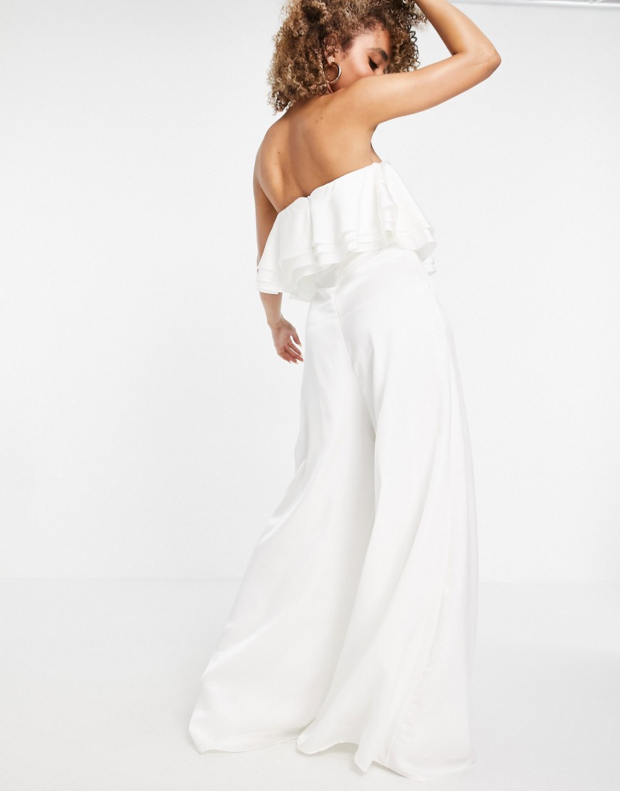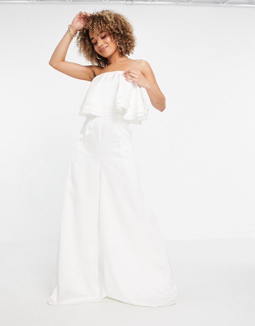Yaura dwuwarstwowy kombinezon ivory bandeau z szerokimi nogawkami 34