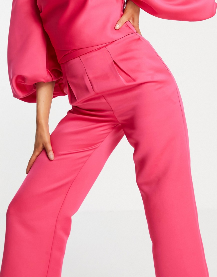 Yaura jaskraworóżowe spodnie dopasowane w talii z rozszerzonymi nogawkami defekt 34