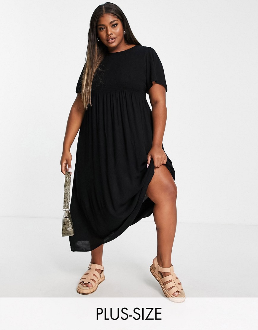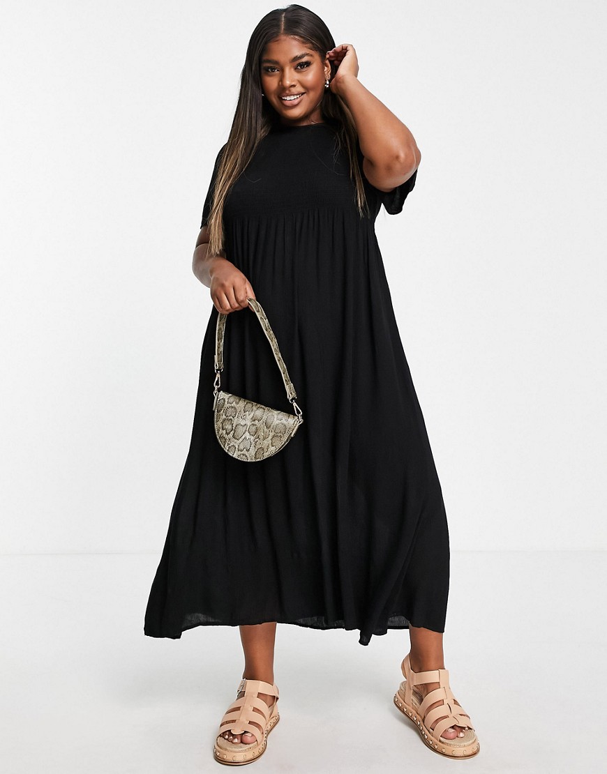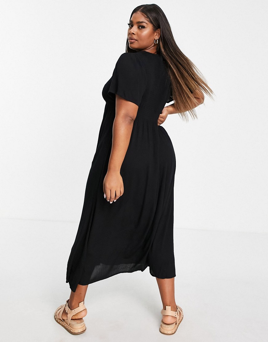 Yours czarna sukienka marszczona góra midi 44