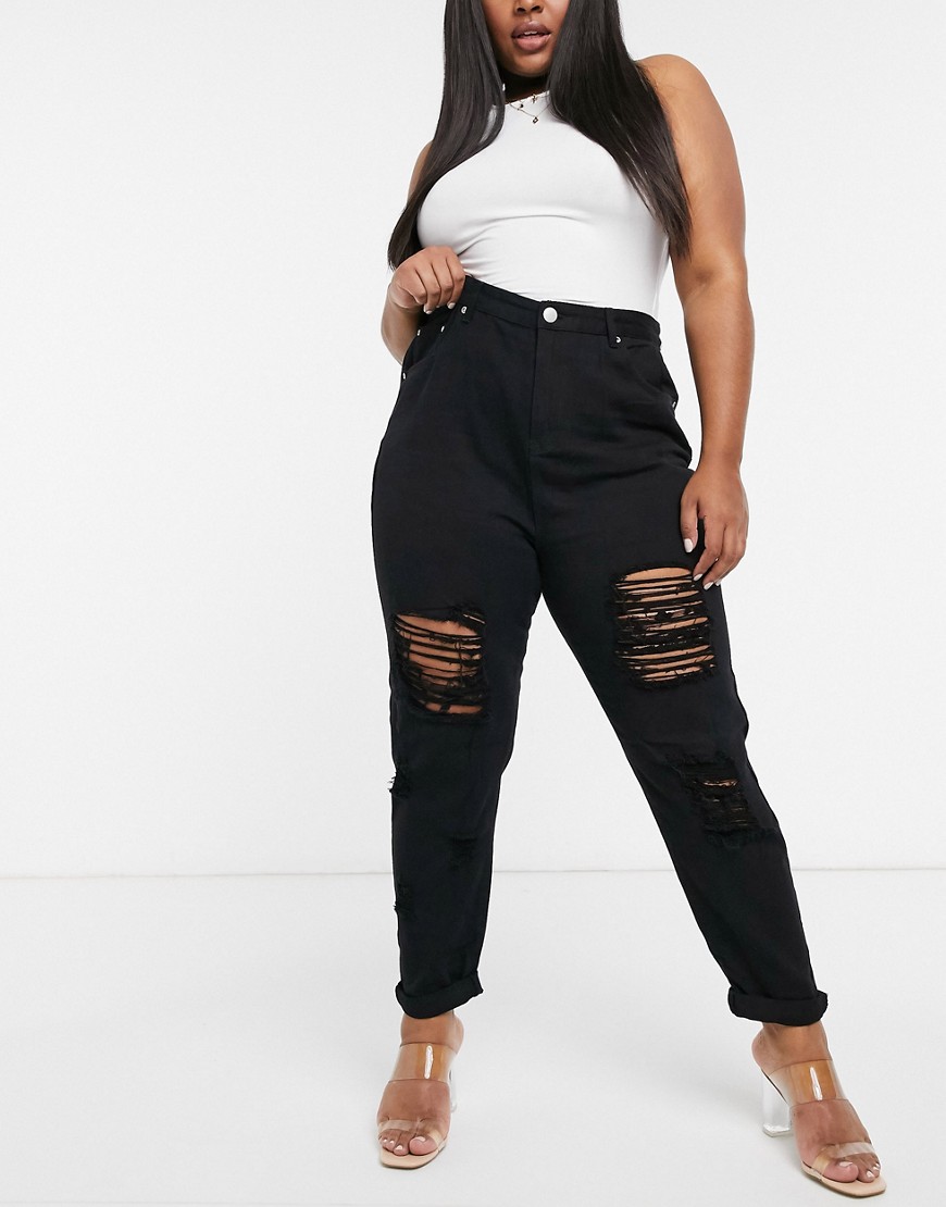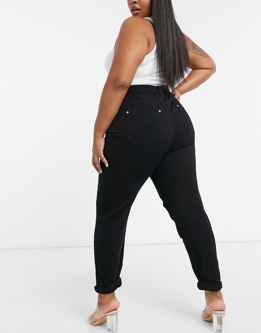 Yours Exclusive czarne damskie mom jeans z rozdarciami 46
