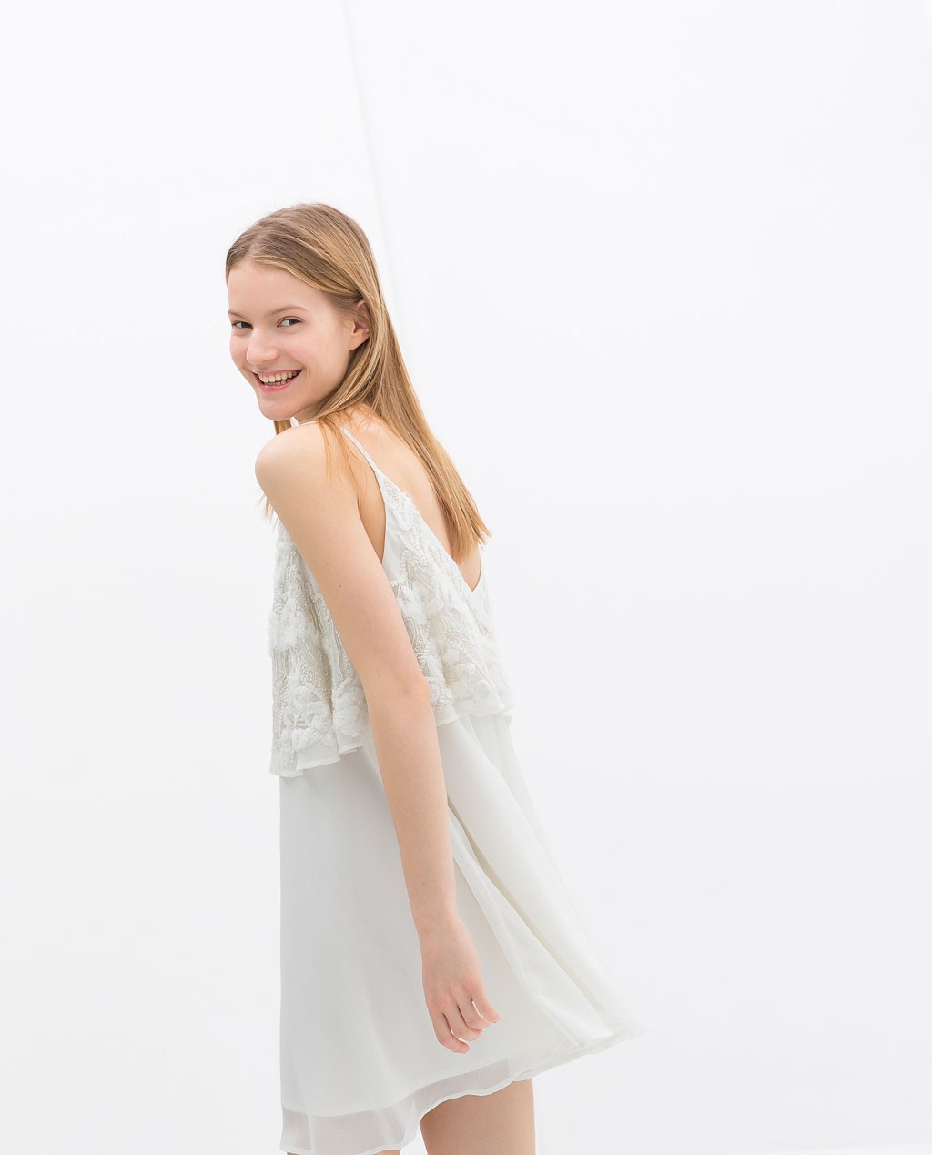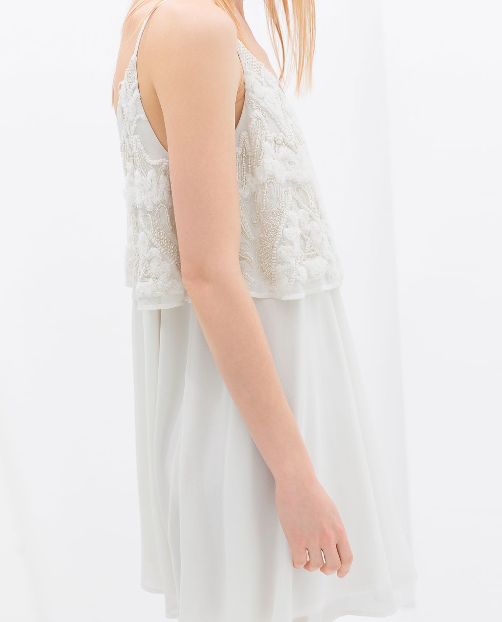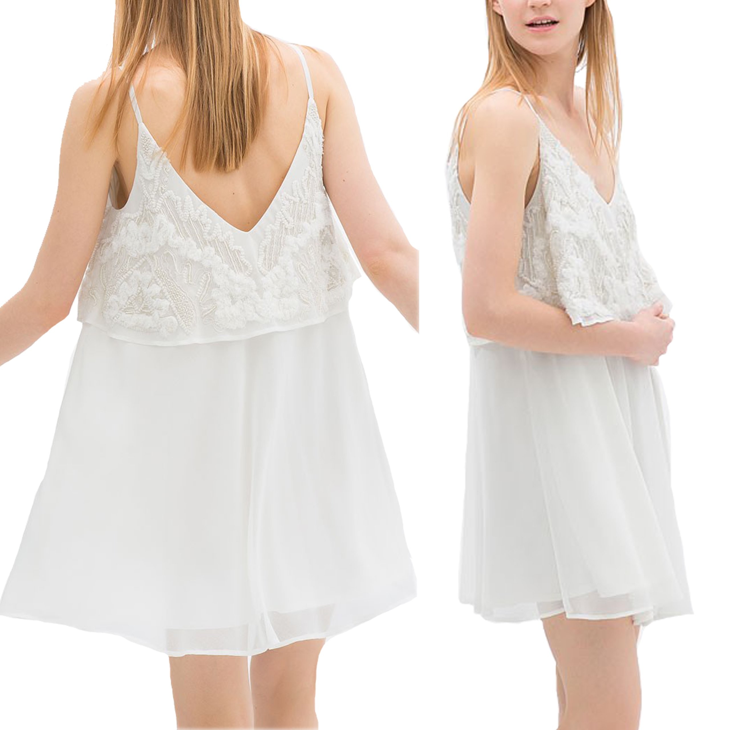 ZARA Kremowa Sukienka zwiewna z koronką
