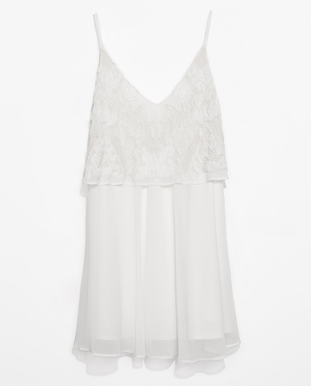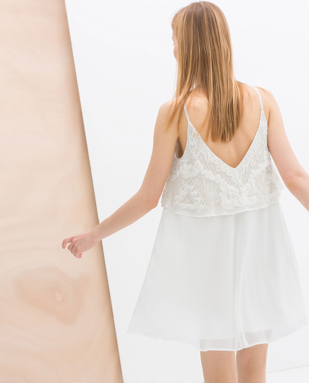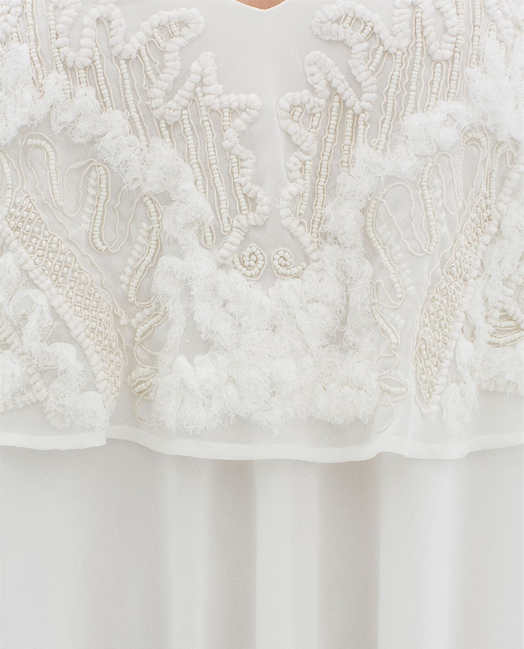 ZARA Kremowa Sukienka zwiewna z koronką