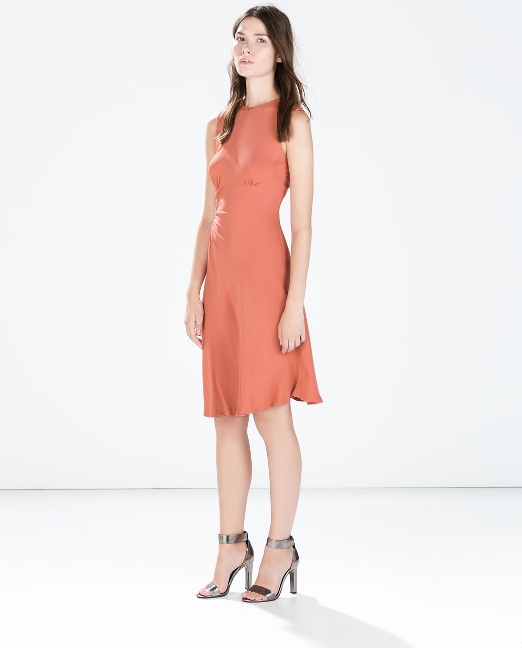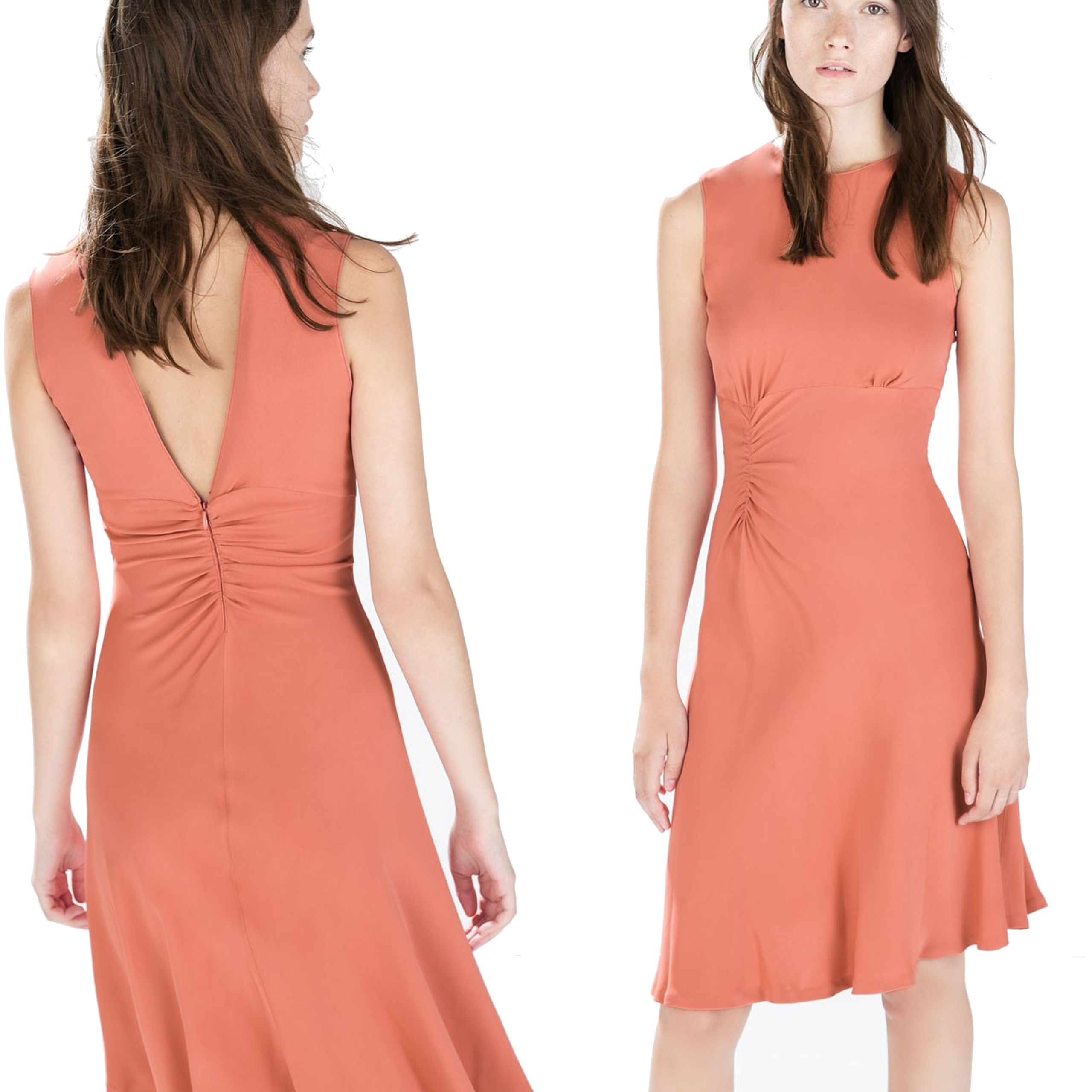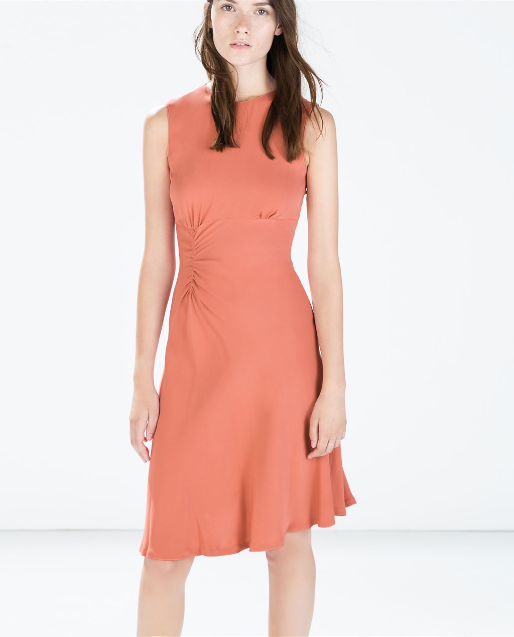 ZARA Sukienka midi drapowana morelowa