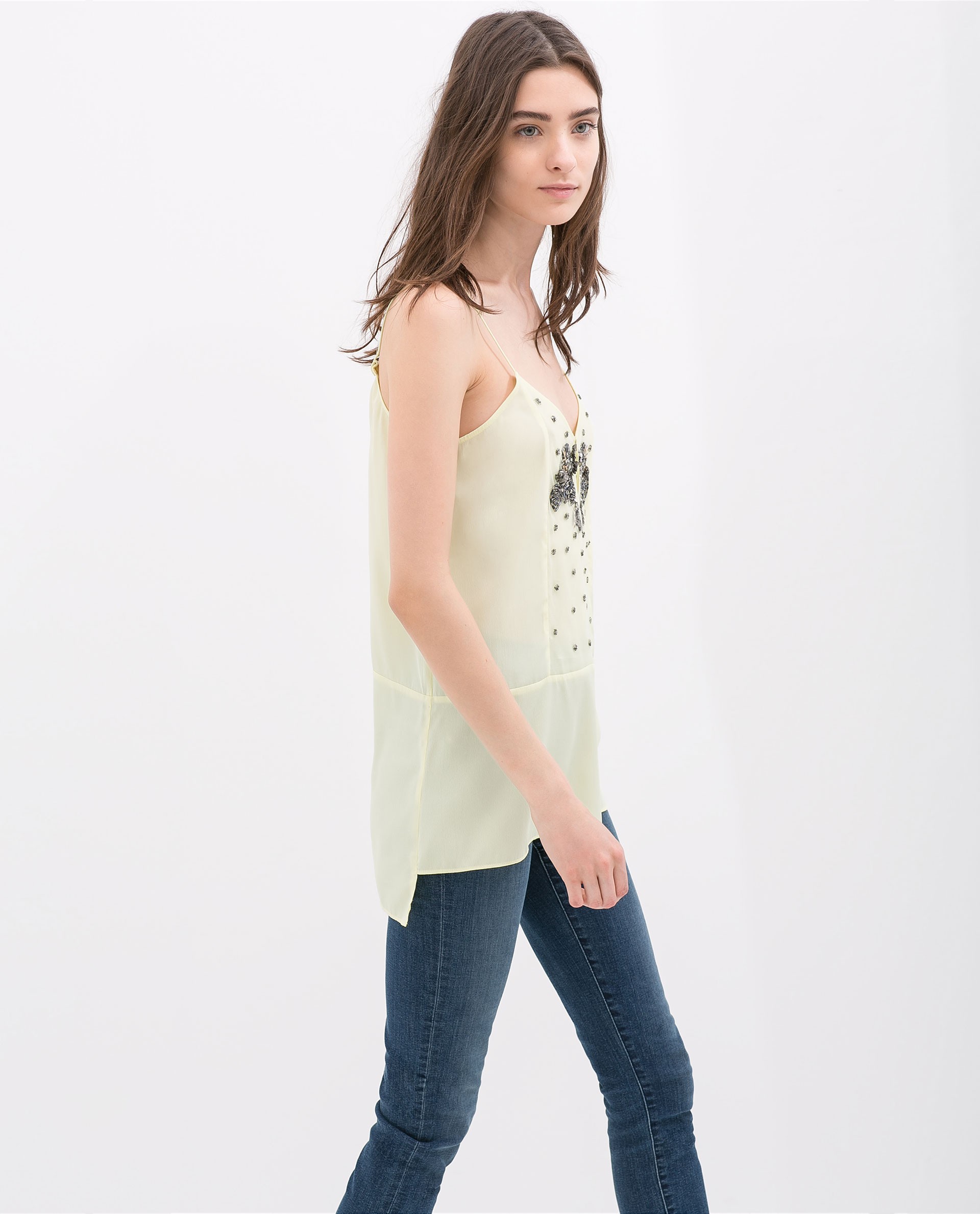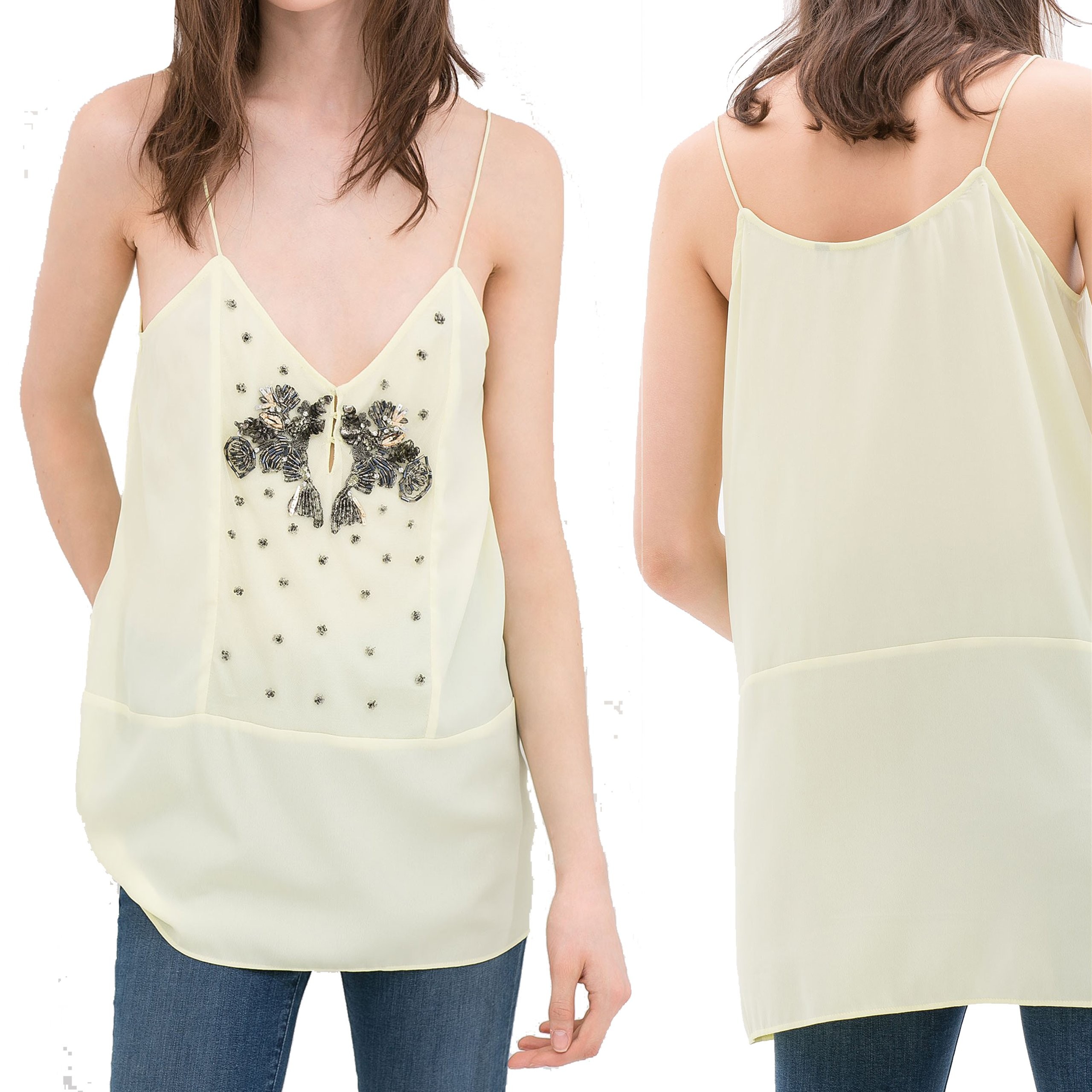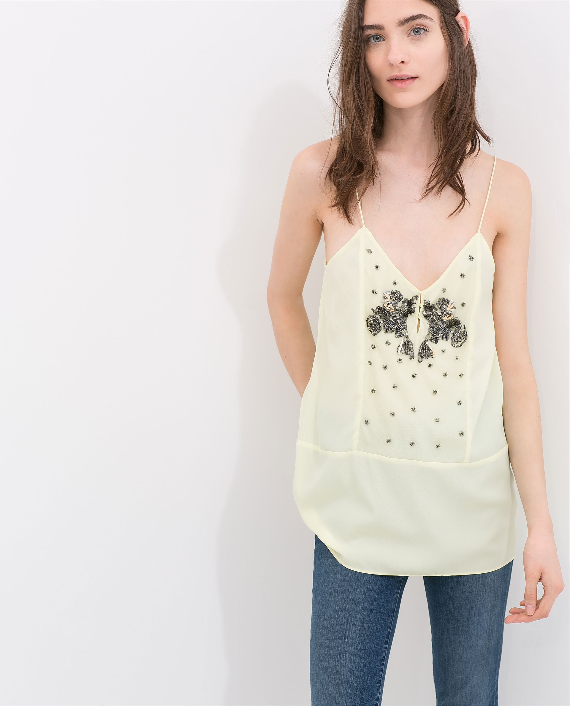 ZARA Żółty Top na ramiączkach zdobiony