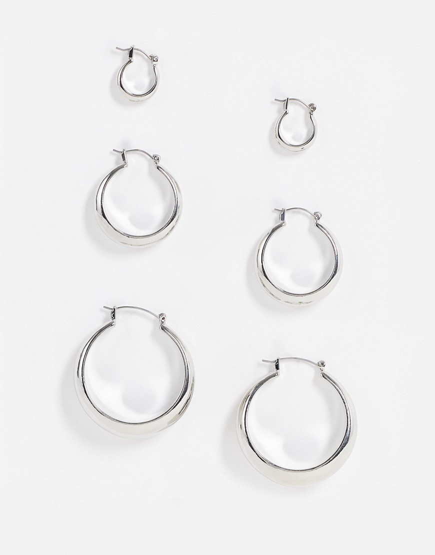 Zestaw 3 par kolczyków różnej wielkości masywne koła w kolorze srebrnym