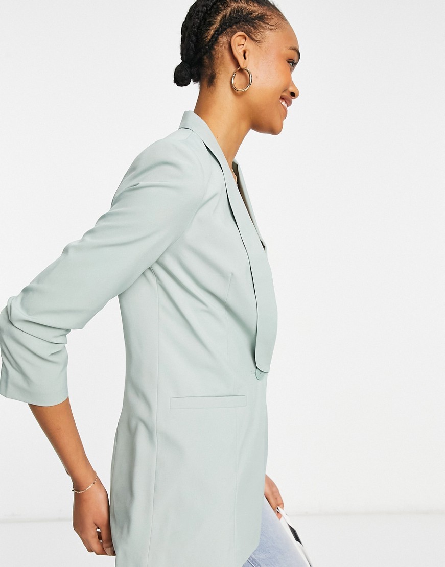 Zielona damska marynarka z rękawem 3/4 jednorzędowa 44