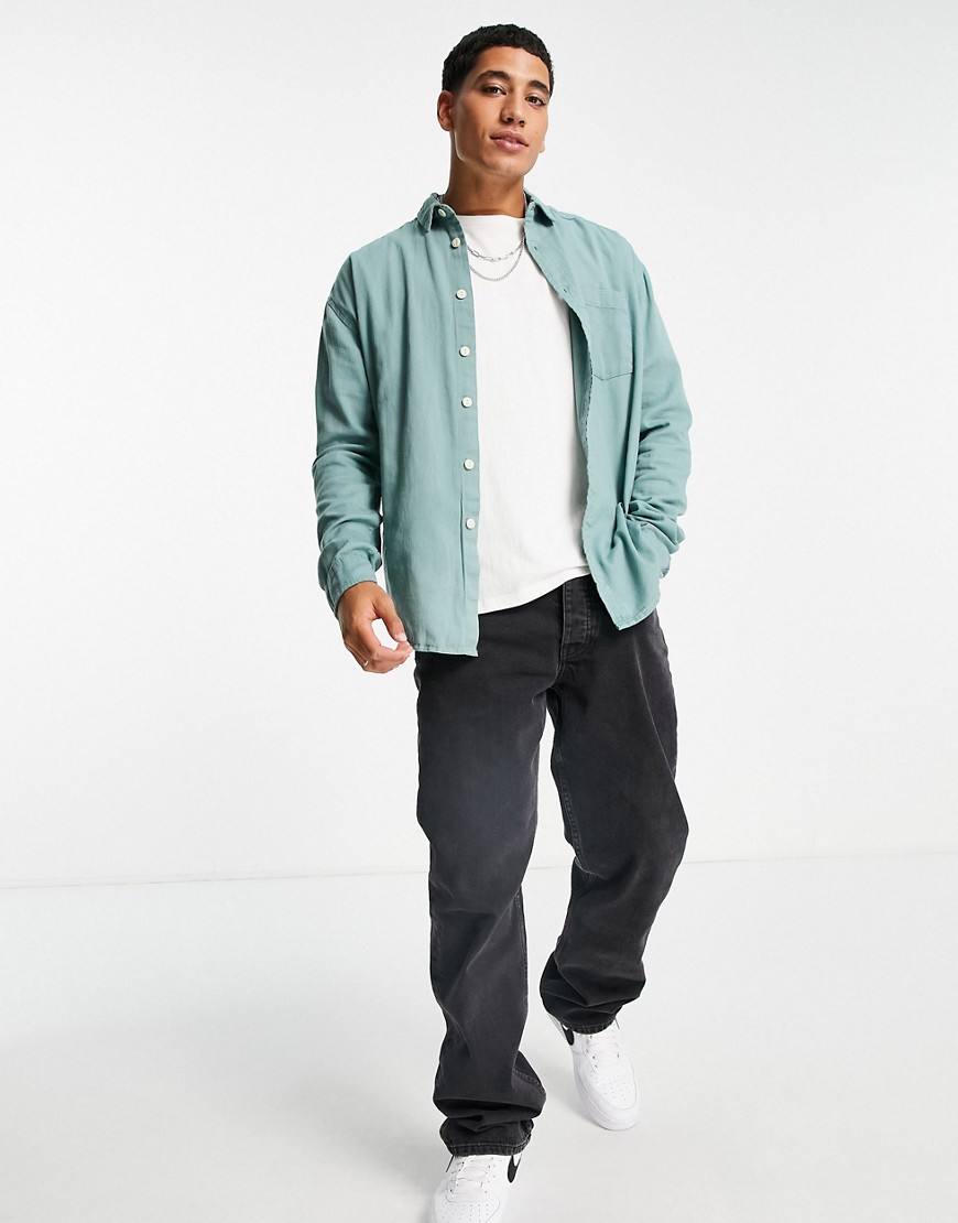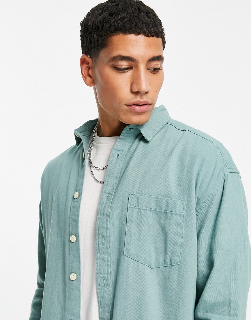 Zielona denimowa koszula oversize w stylu lat 90. M