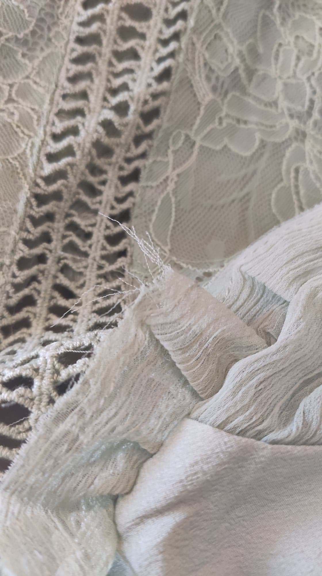 - Defekt: wystające nitki przy falbanach w różnych miejscach. Można poobcinać.