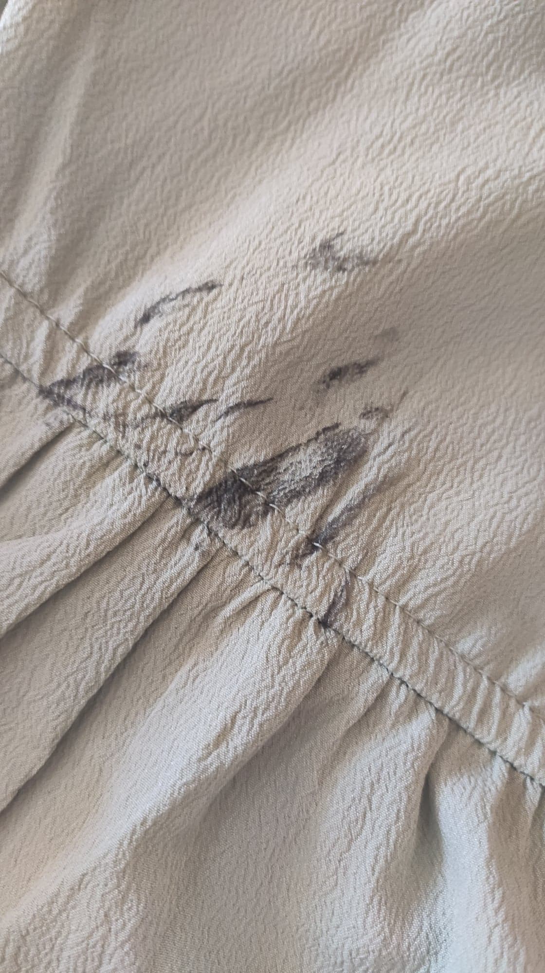 - zabrudzenie lub przebarwienie z tyłu na wysokości pasa