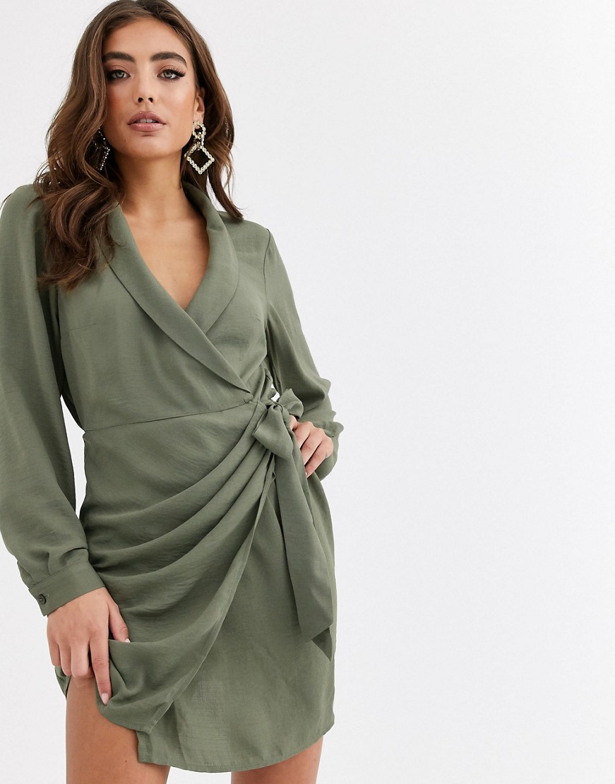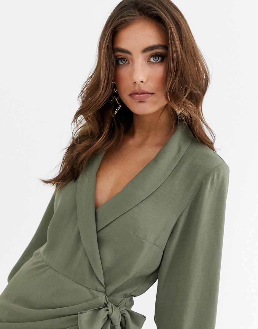 Zielona kopertowa sukienka mini z kołnierzykiem 40