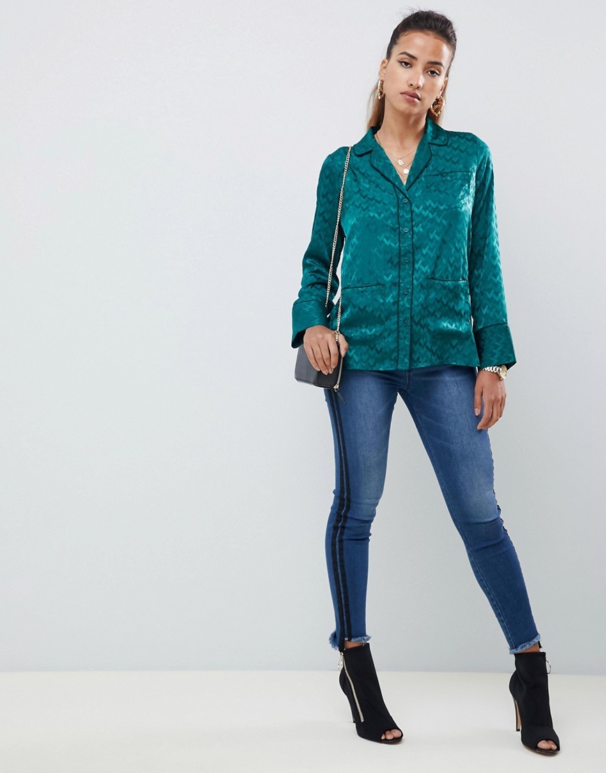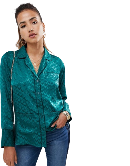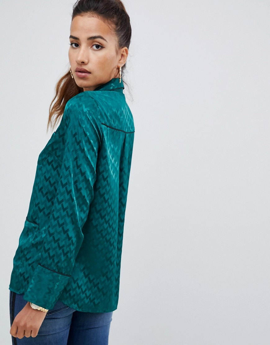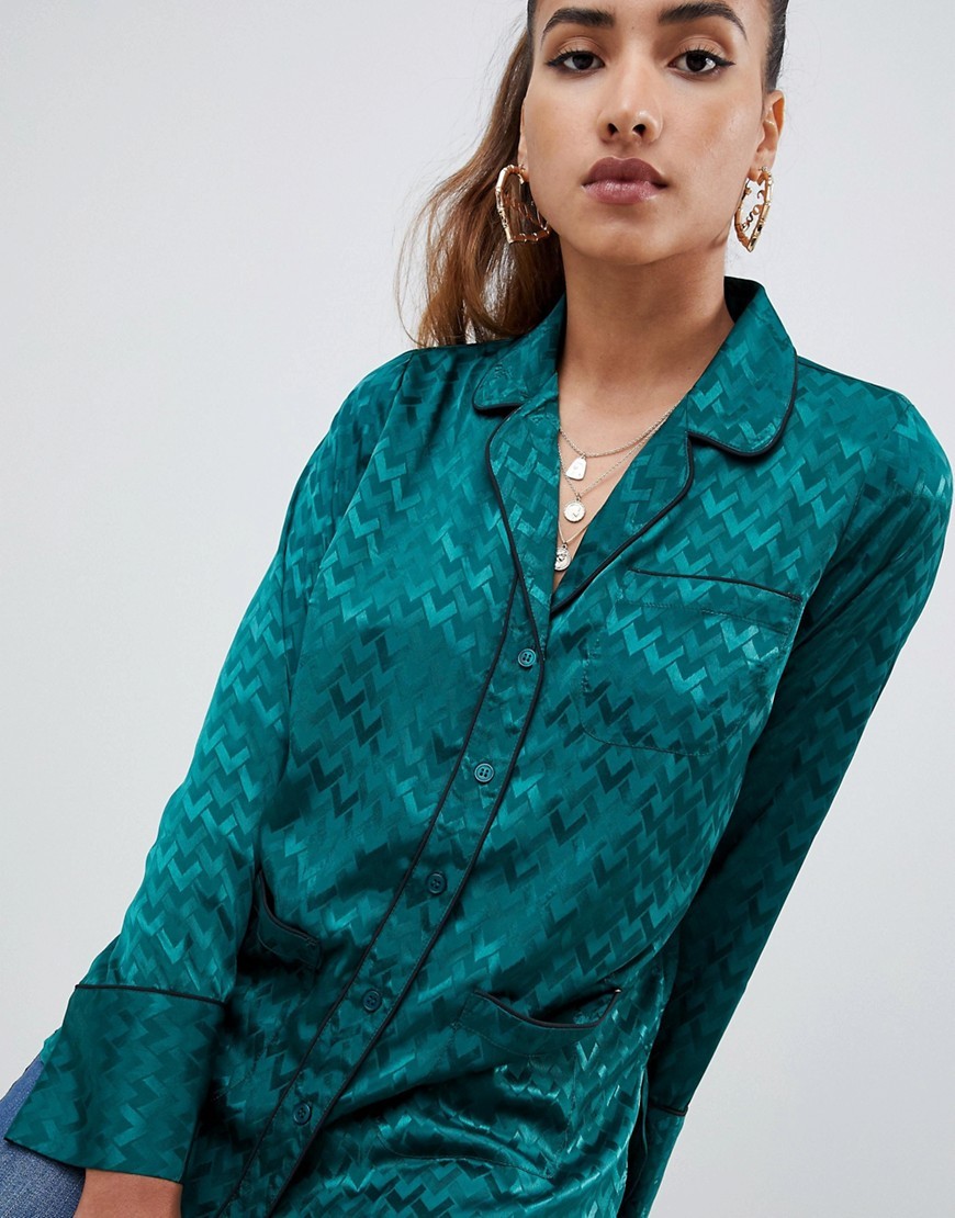 Zielona Koszula z długim rękawem piżamowy styl XS 34