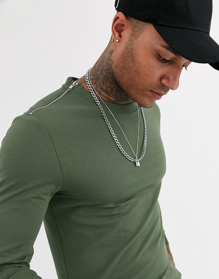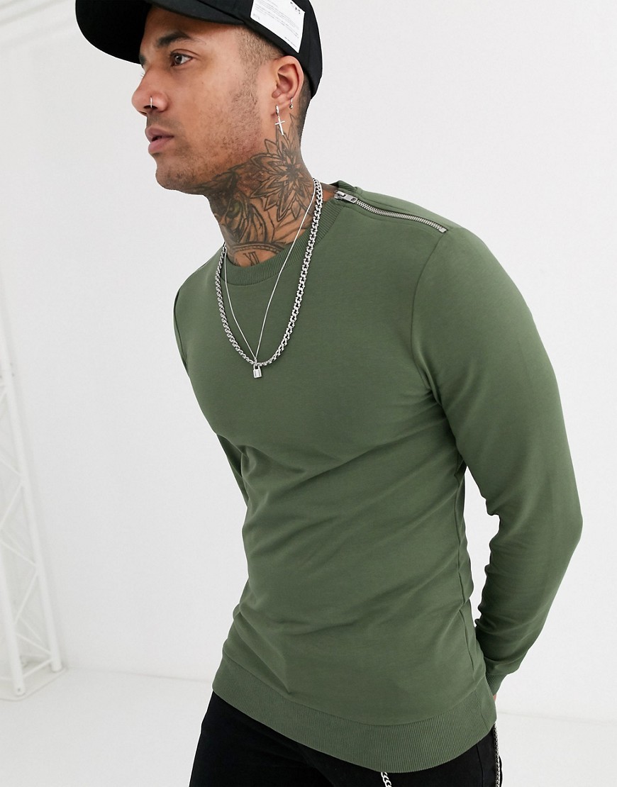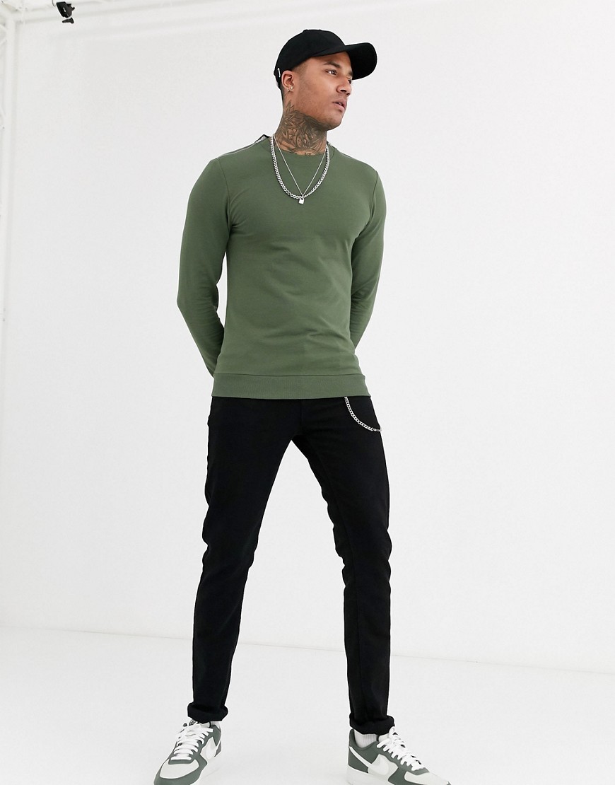 Zielona koszulka z długim rękawem muscle fit L