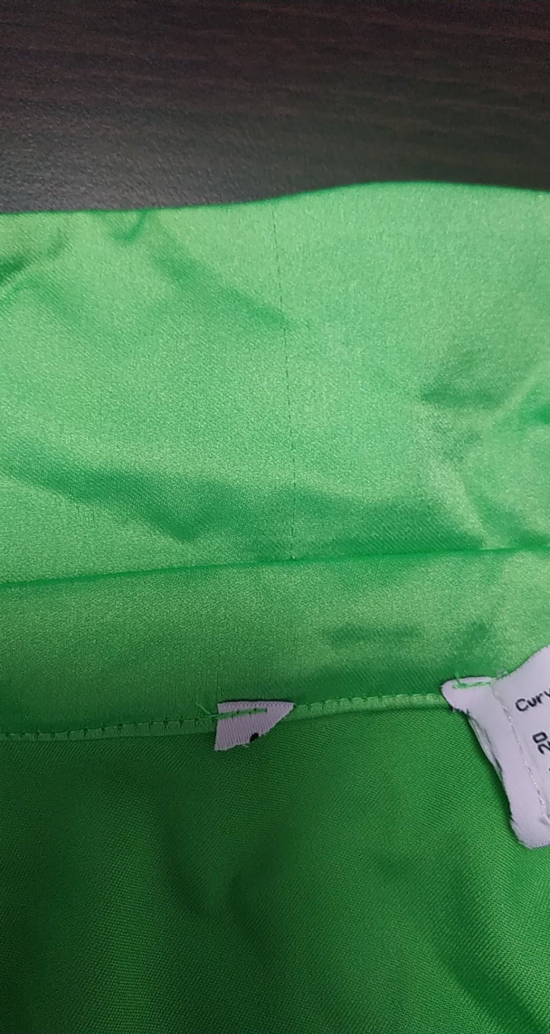 - defekt zaciągnięte nitki na kołnierzu, plamka przy rękawie