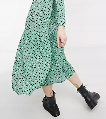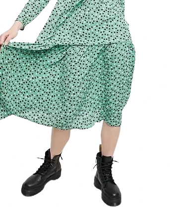 Zielona luźna spódnica kaskadowa midi wzór w kropki 44