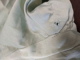 - defekt niewielka dziurka po prawej stronie pod kołnierzem