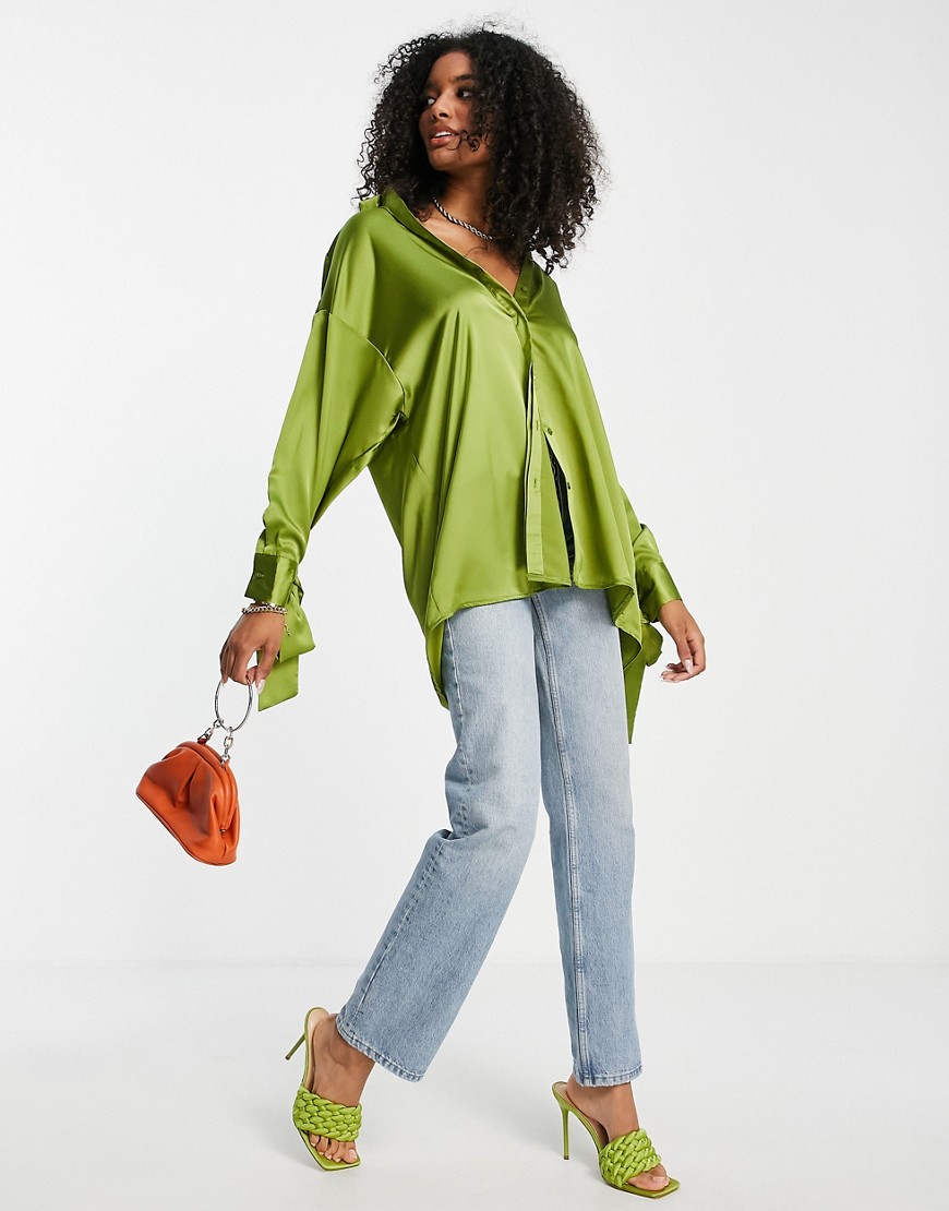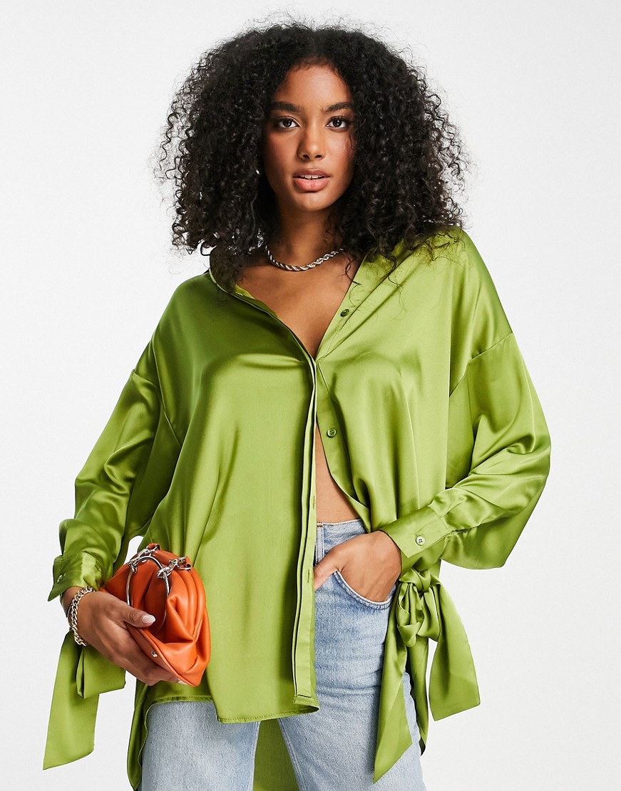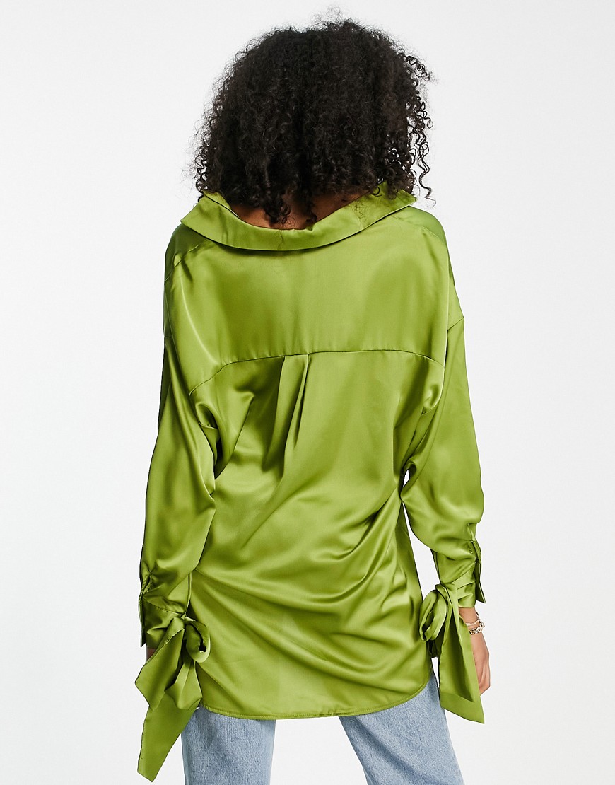 Zielona satynowa koszula oversize wiązane mankiety 36
