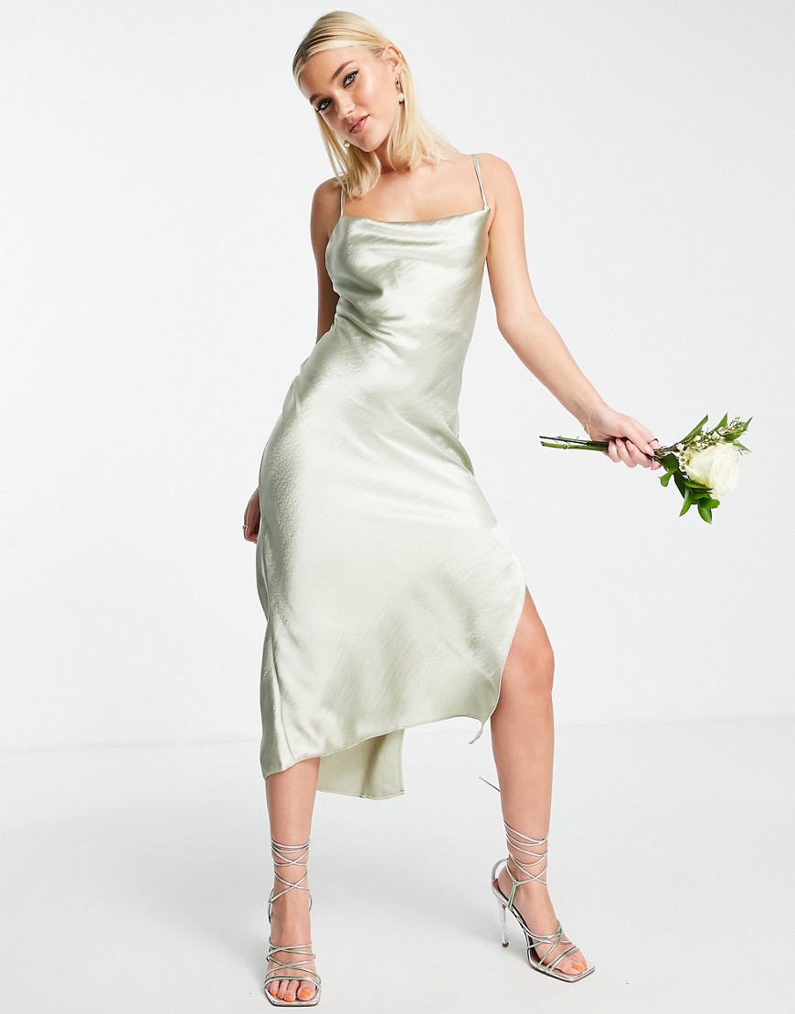 Zielona satynowa sukienka midi na ramiączkach z wiązanym tyłem 42
