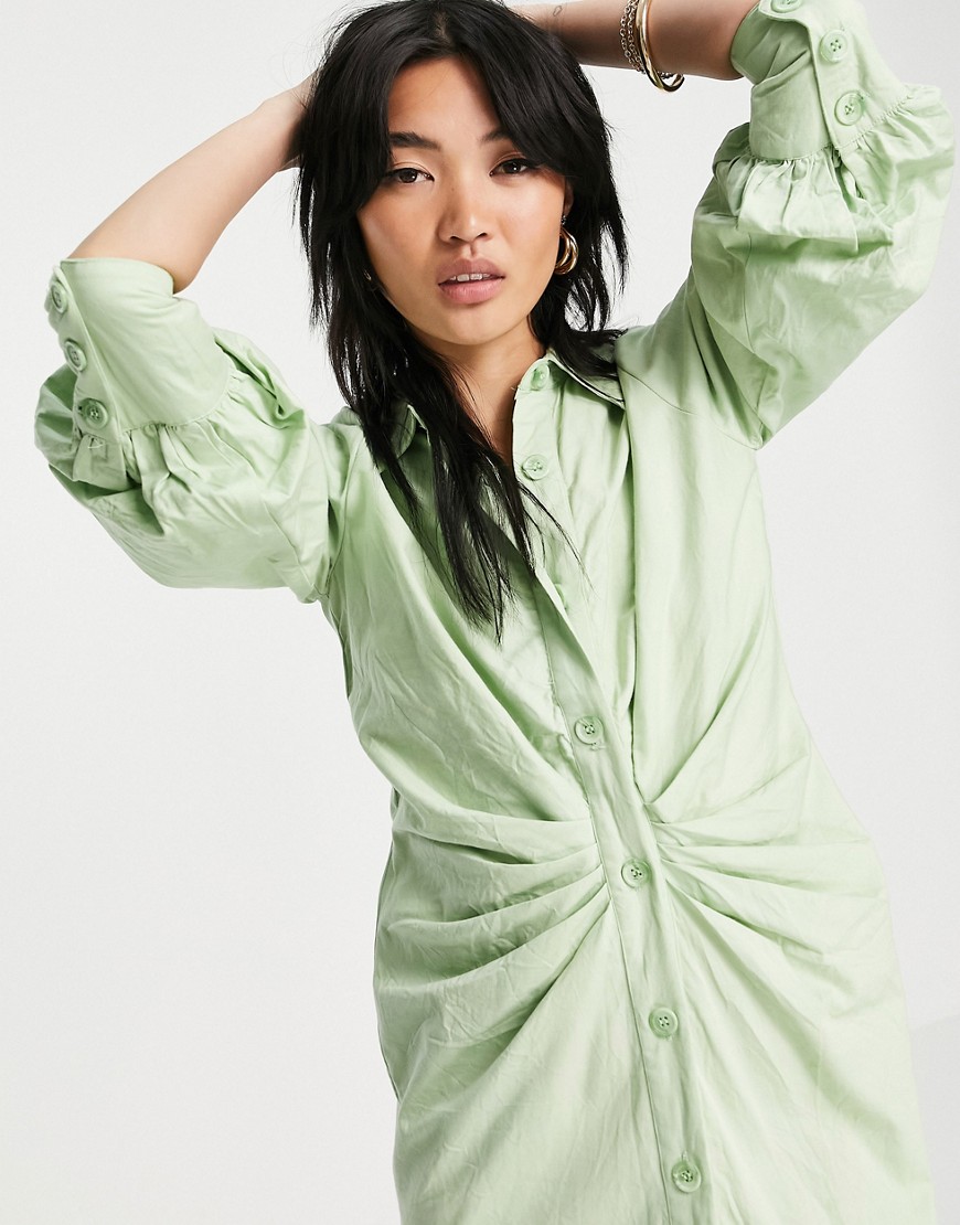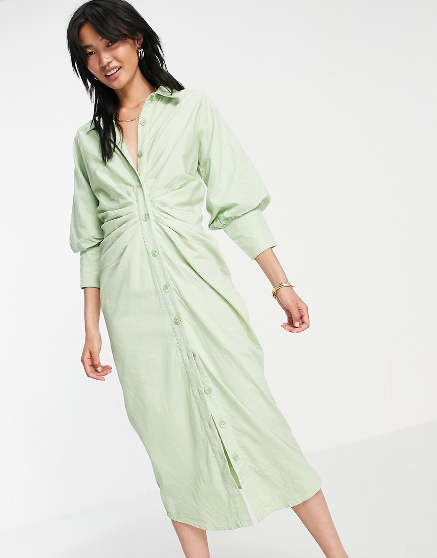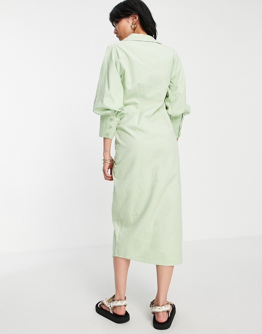 Zielona sukienka koszulowa midi drapowana talia 42