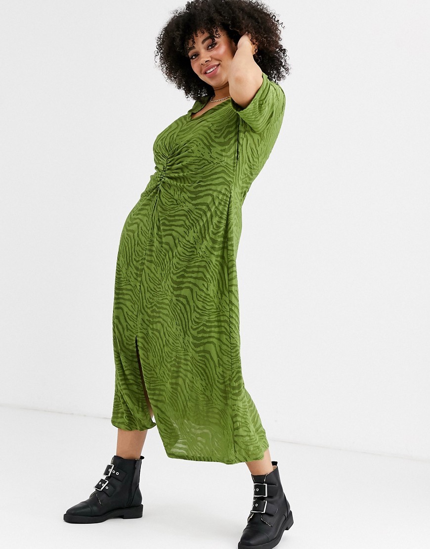 Zielona Sukienka midi plus size zebra w paski 46