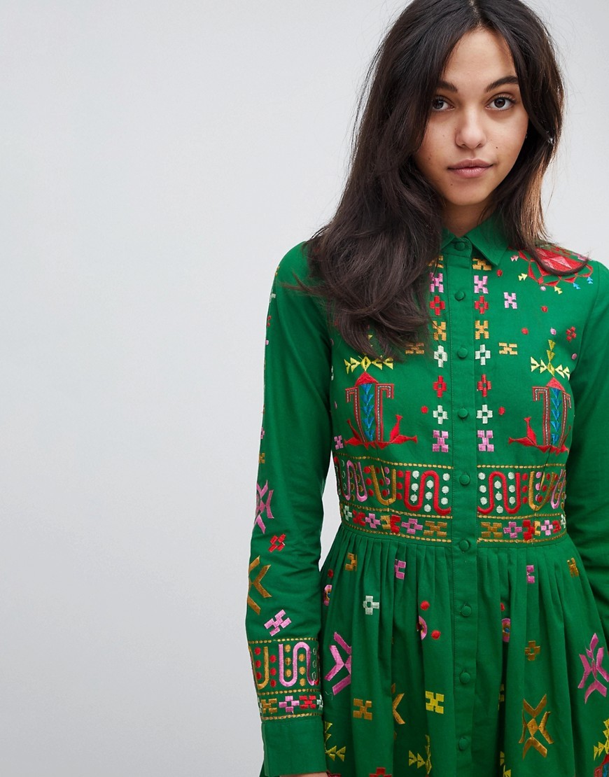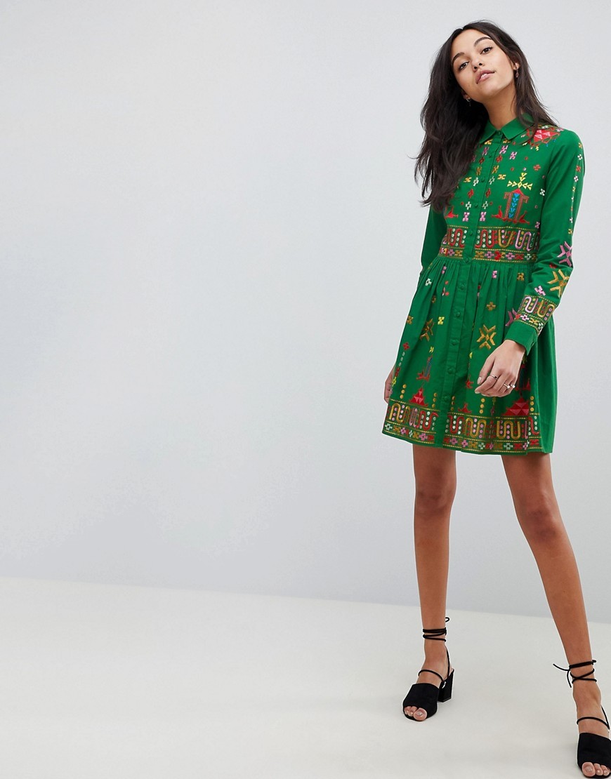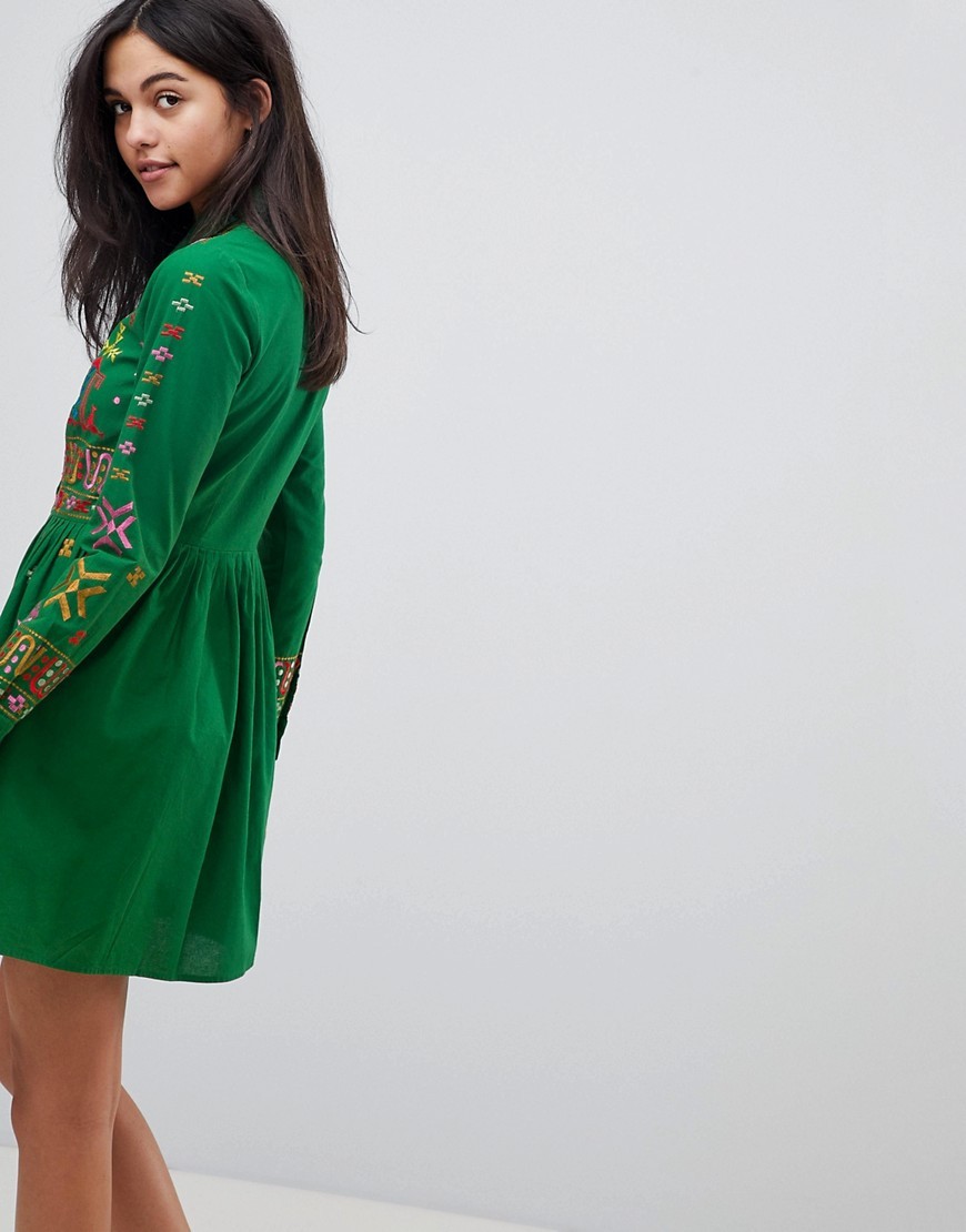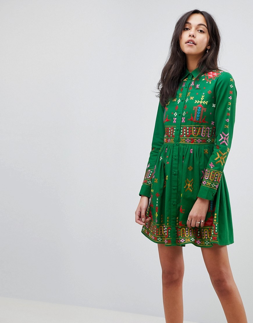 Zielona Sukienka mini zdobiona koszulowa XL 42