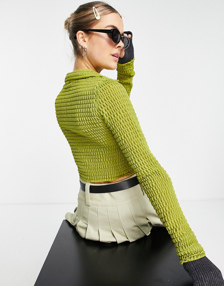 Zielona teksturowana koszula zapinana na guziki 34