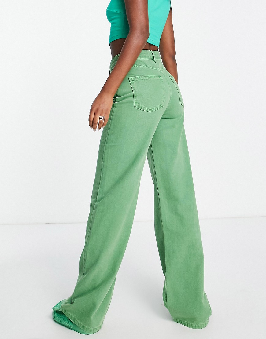 Zielone jeansy dad fit z prostymi nogawkami i podwyższonym stanem 42