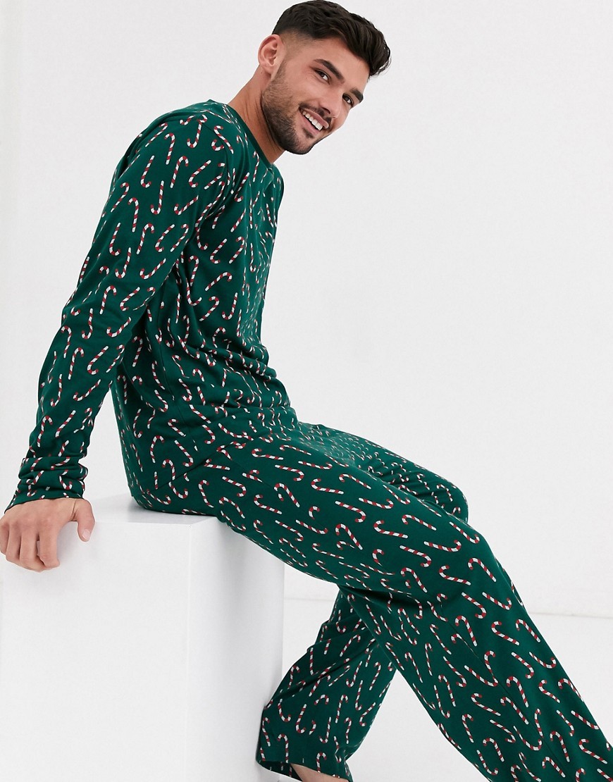 Zielone Spodnie od Piżamy męskie świąteczny wzór M