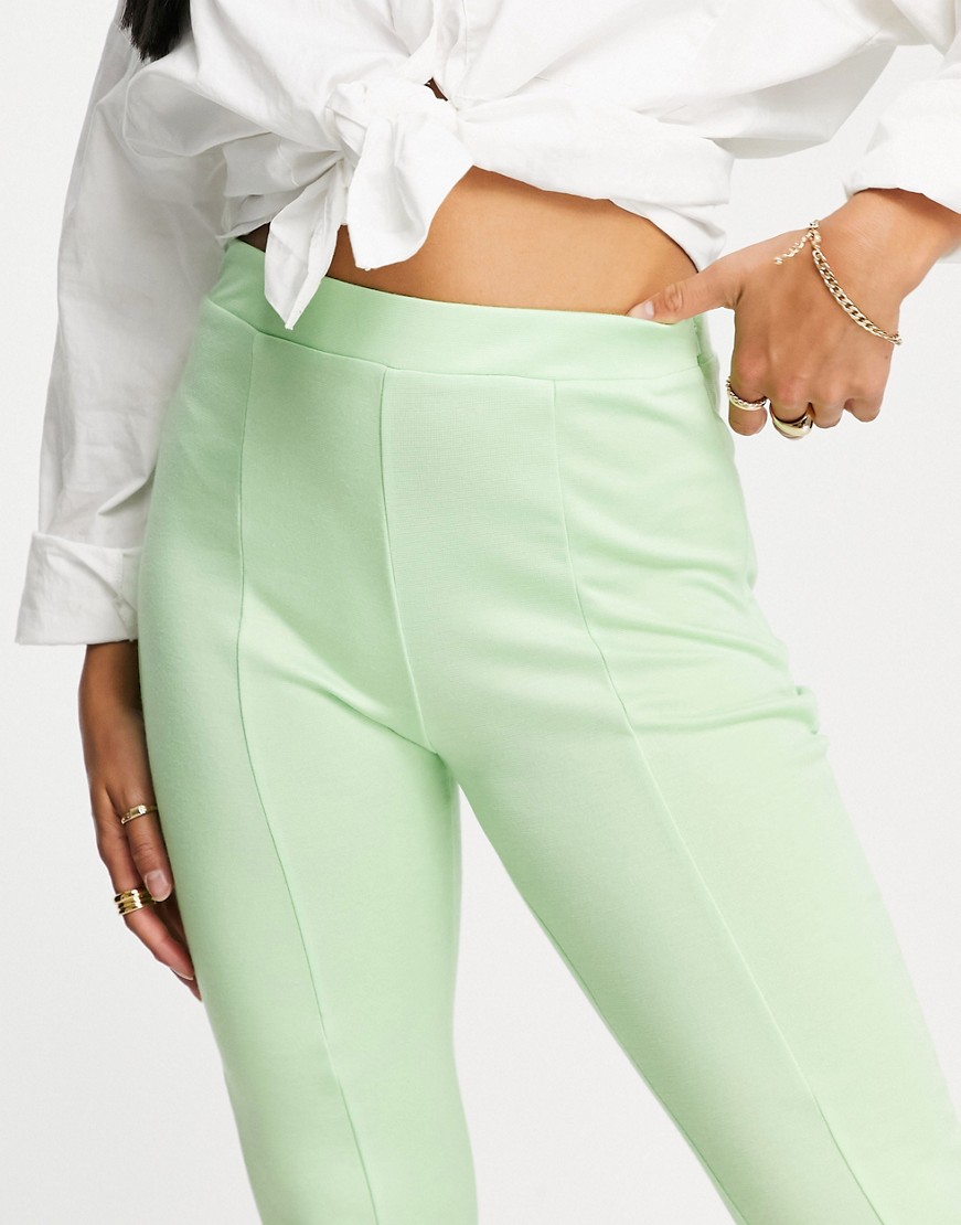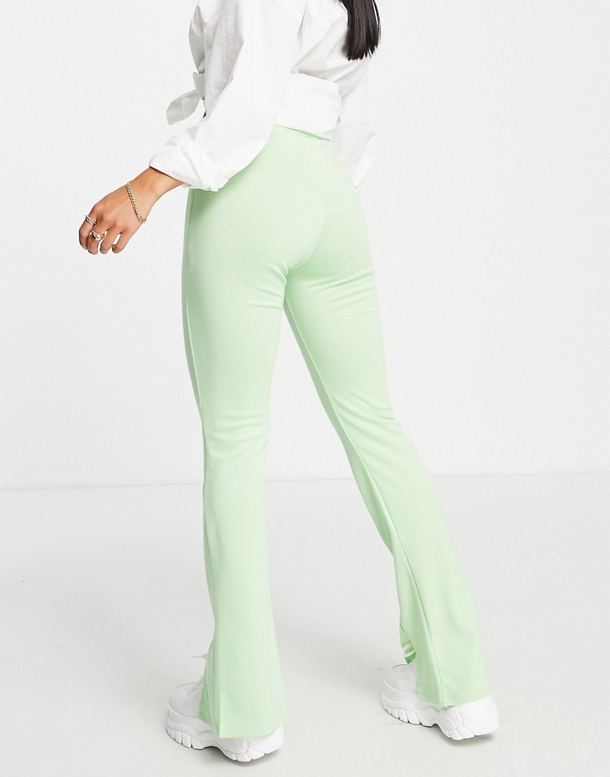 Zielone spodnie podwyższony stan dzwony flare rozcięcia z przodu 38