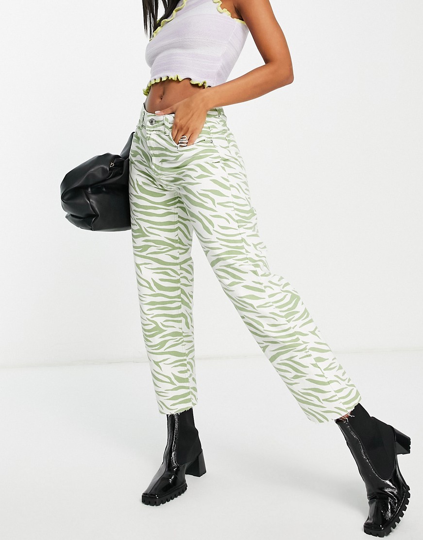 Zielone spodnie podwyższony stan straight leg wzór zebry 40