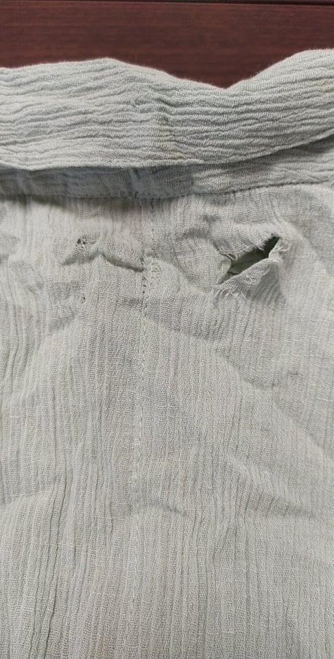 - Defekt : rozcięcie przy metce, na plecach
