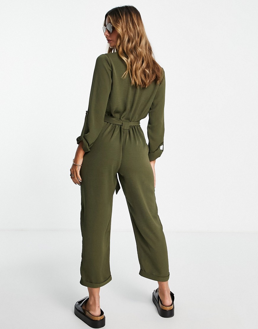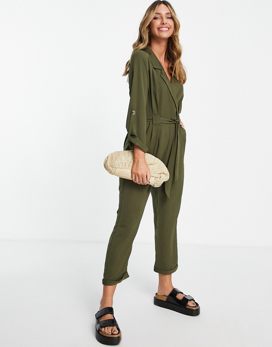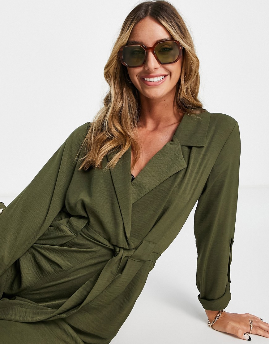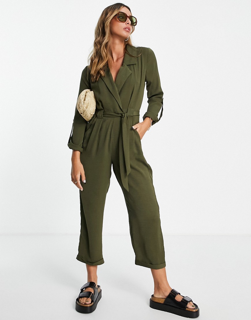 Zielony kombinezon 7/8 casual wiązanie w pasie 46