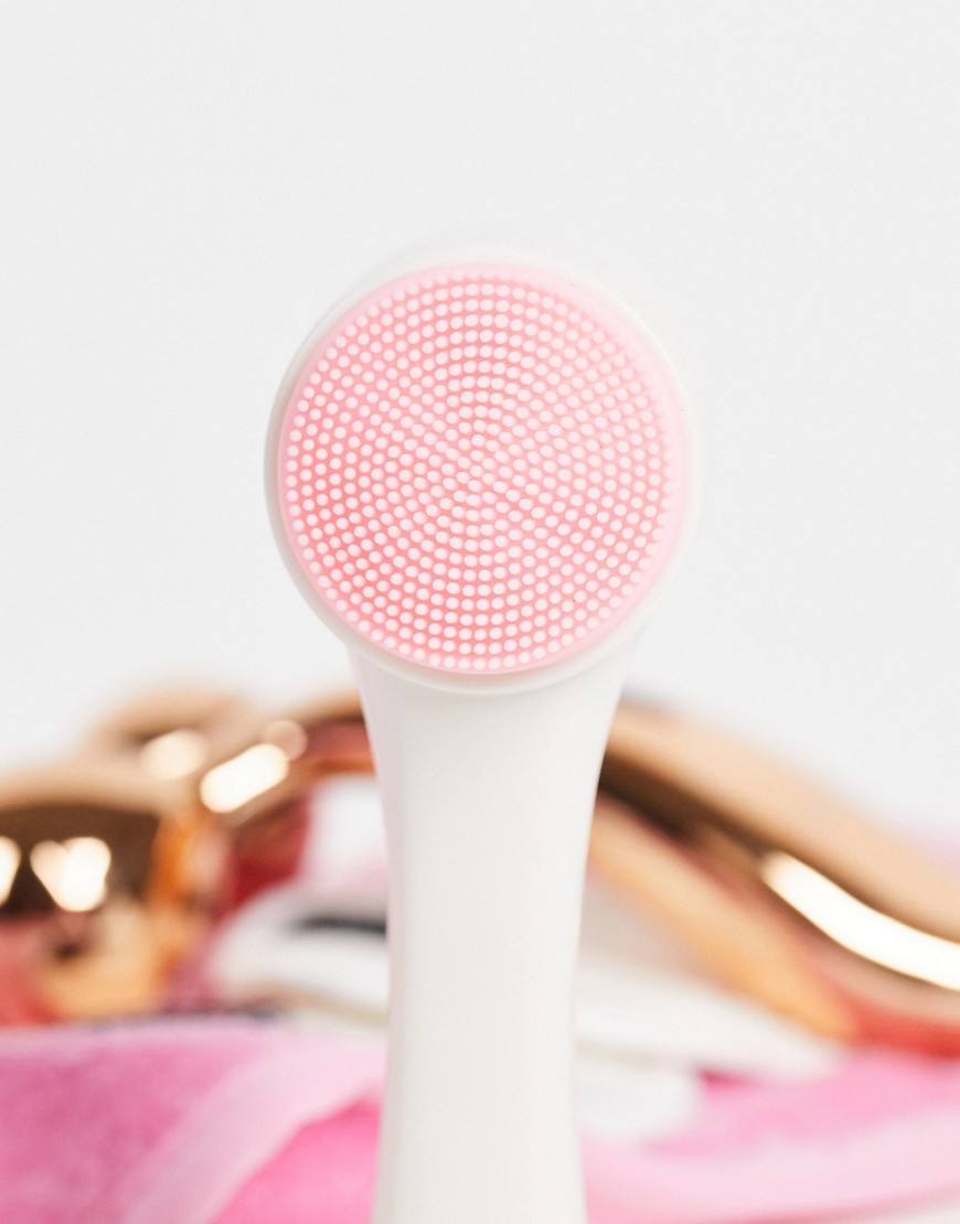 - Dwustronna szczoteczka oczyszczająca usuwa brud, makijaż i brud