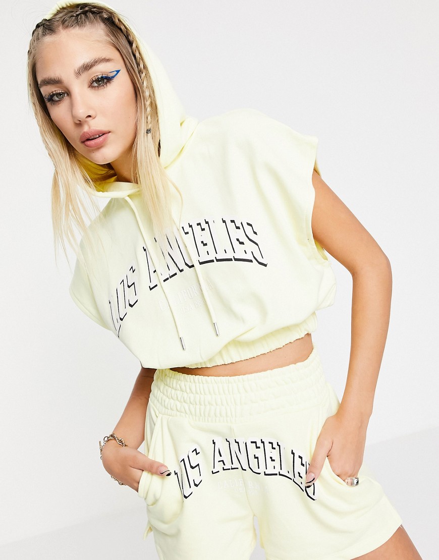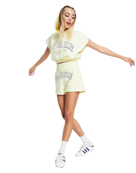 Żółte damskie szorty do biegania z nadrukiem LA XS
