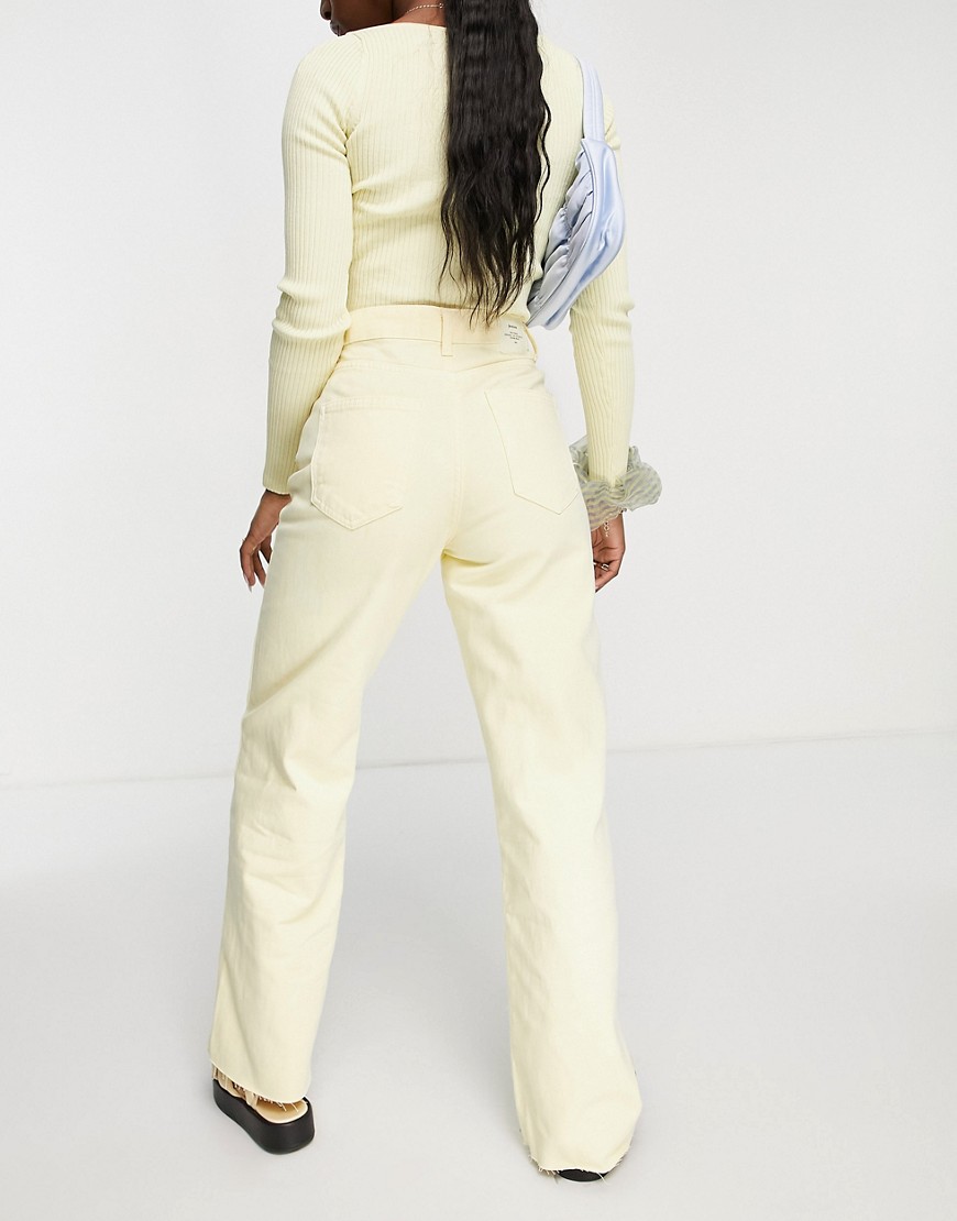Żółte jeansy damskie typu mom w stylu lat 90 wysoki stan 34