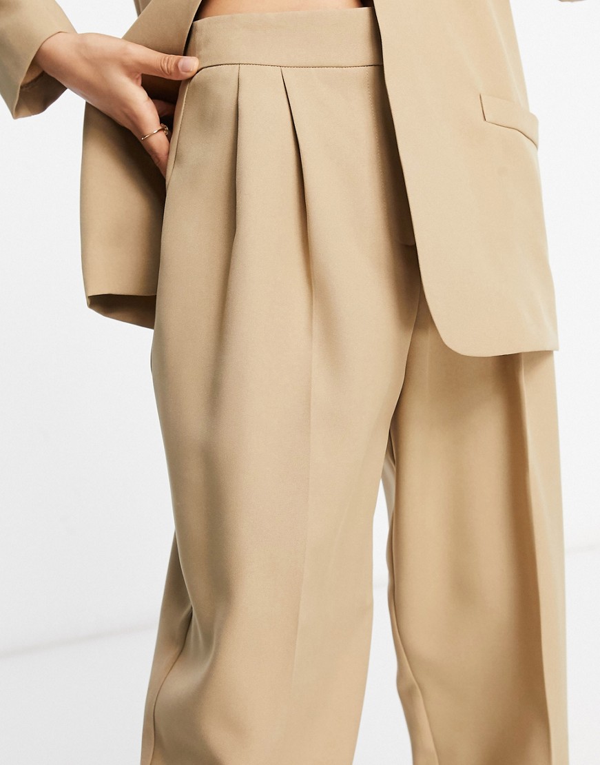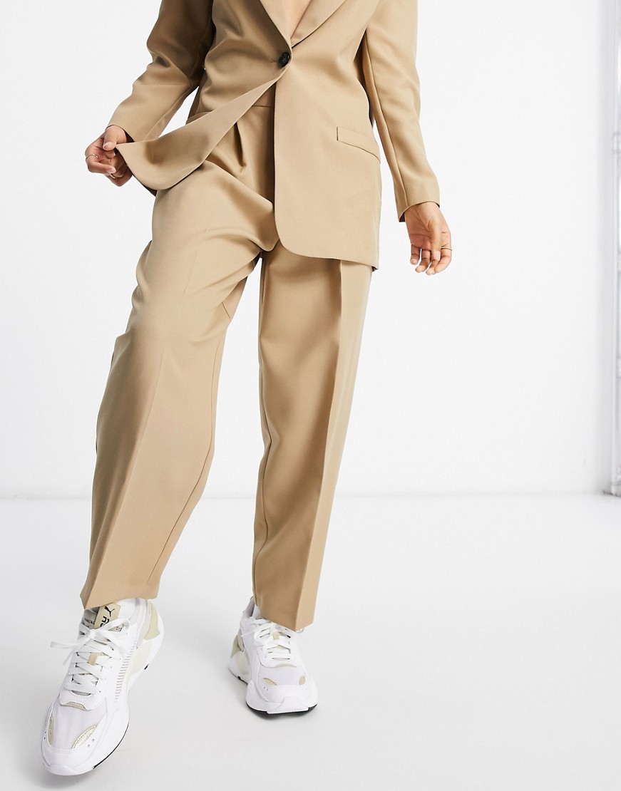 Zwężane spodnie garniturowe w kolorze kawy z mlekiem 40